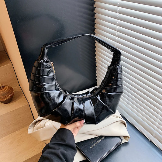 Silver Handbags Women Dumpling Shoulder Bag Fashion Luxury Ladies Hobos Bags High Capacity Female Tote Bag Black
