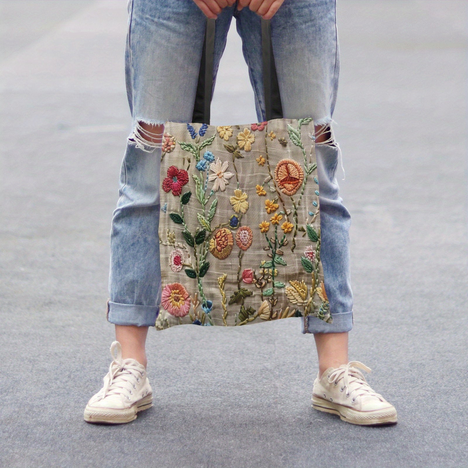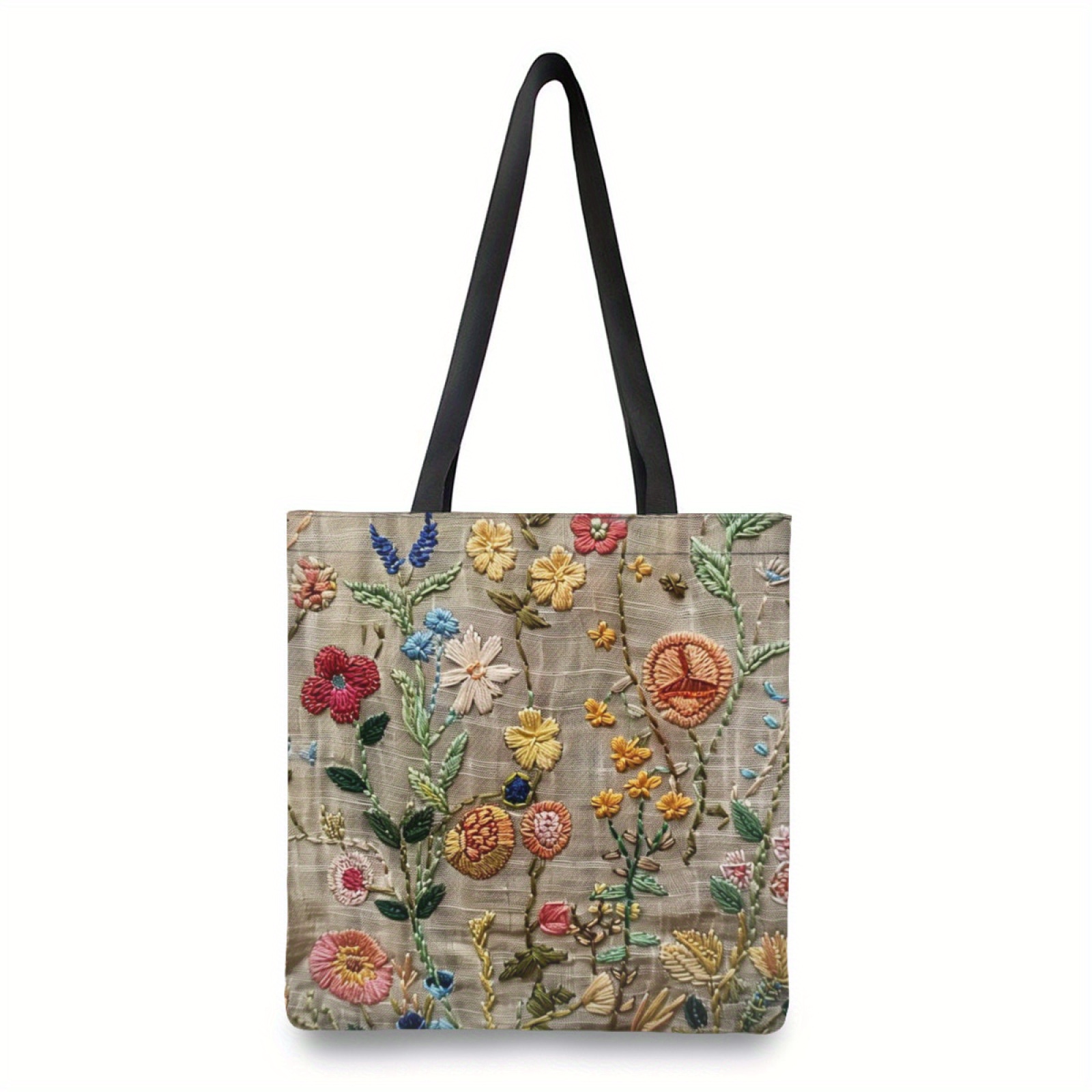 1pc Fashionable Embroidered Flower Pattern Bag, Niche Design Mesh Storage Handbag, Lightweight Shopping Bag Reusable Grocery Tote Bag Casual Travel Shoulder Beach Shopping Handbags Large Eco Reusable Shopping Bag Handle