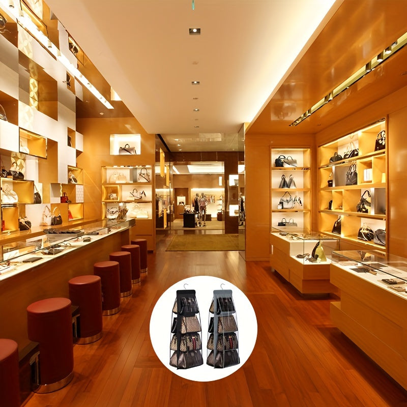 1pc LDQ Multi-Layer Handbag Organizer with 8 Pockets - Foldable Oxford Cloth Hanging Storage Rack, Space-Saving Closet Organizer for Handbags, Purses & Accessories, Durable Black & Gray Design, Perfect for Christmas, Hallowee