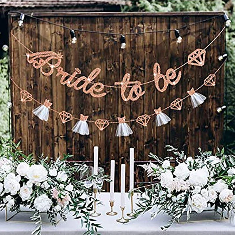 1set Rose Gold Glitter Bride to Be Banner Engagement Wedding Bridal Shower Bunting Garland Decor Bachelorette Hen Party Supplies