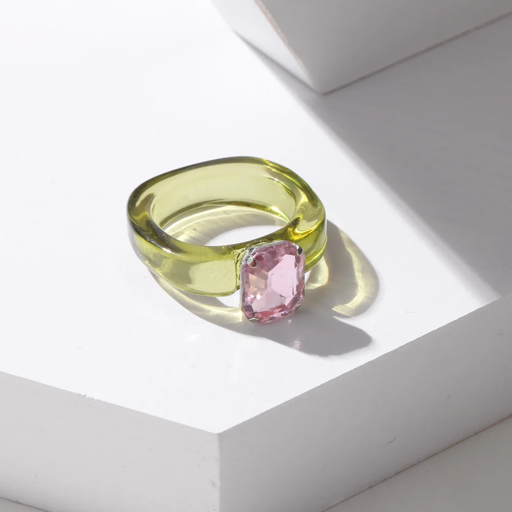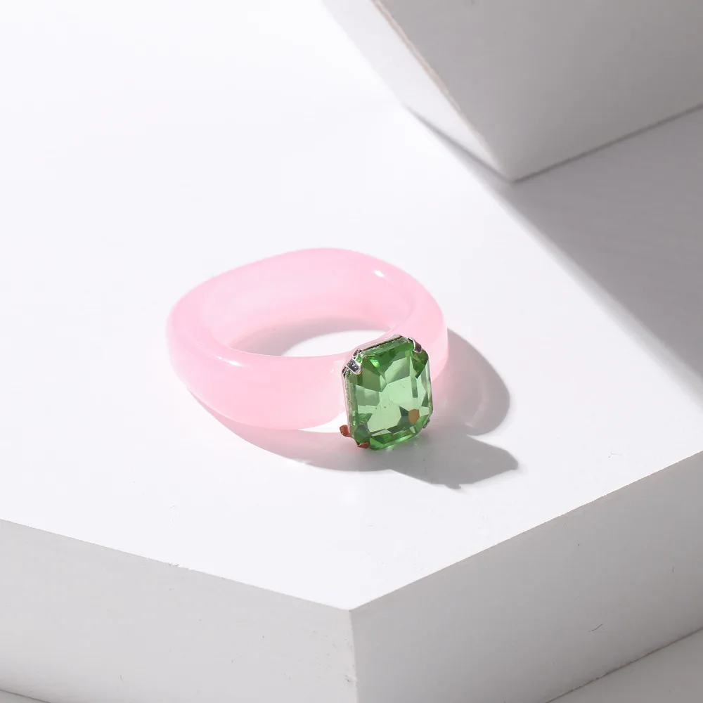 2021 New Colourful Transparent Resin vintage ring simple style Geometric Square Round Rings for Women men unisex Jewelry Gifts