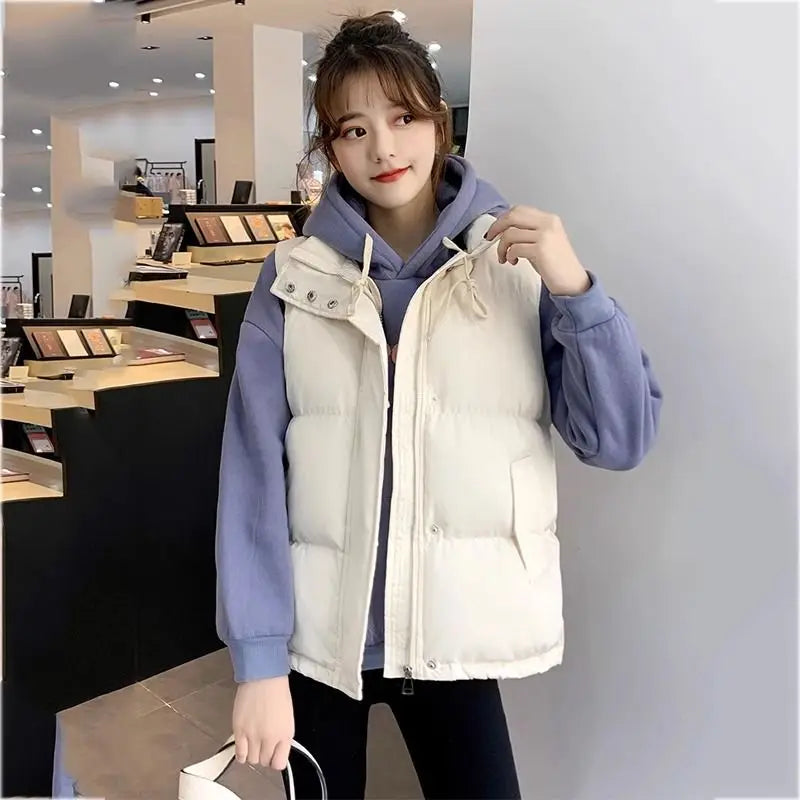 2024 Autumn/winter New Women's Outerwear Simple Shoulder Vest Versatile Half-polo/turtle Neck Sleeveless Horse Rider Vest Trendy