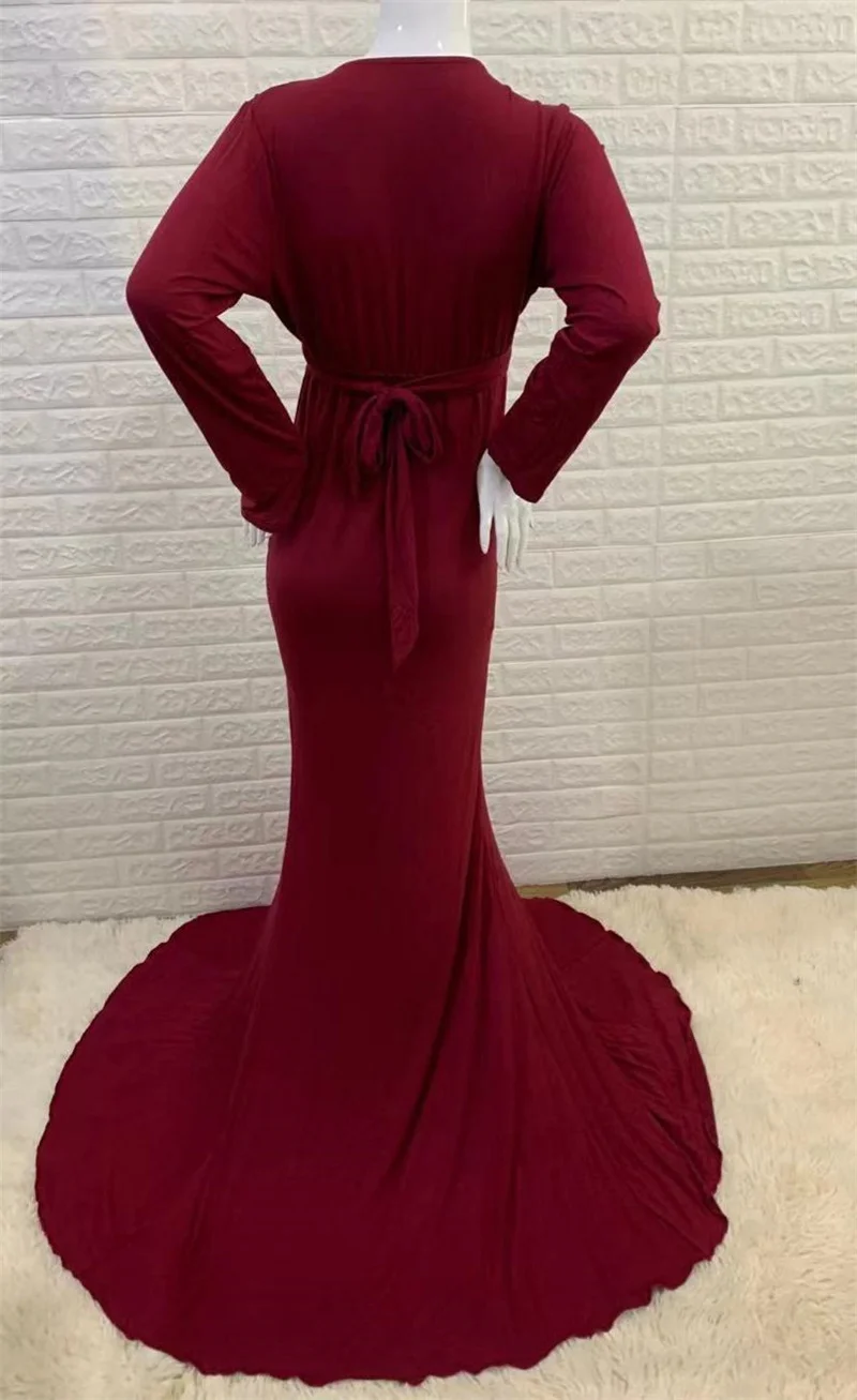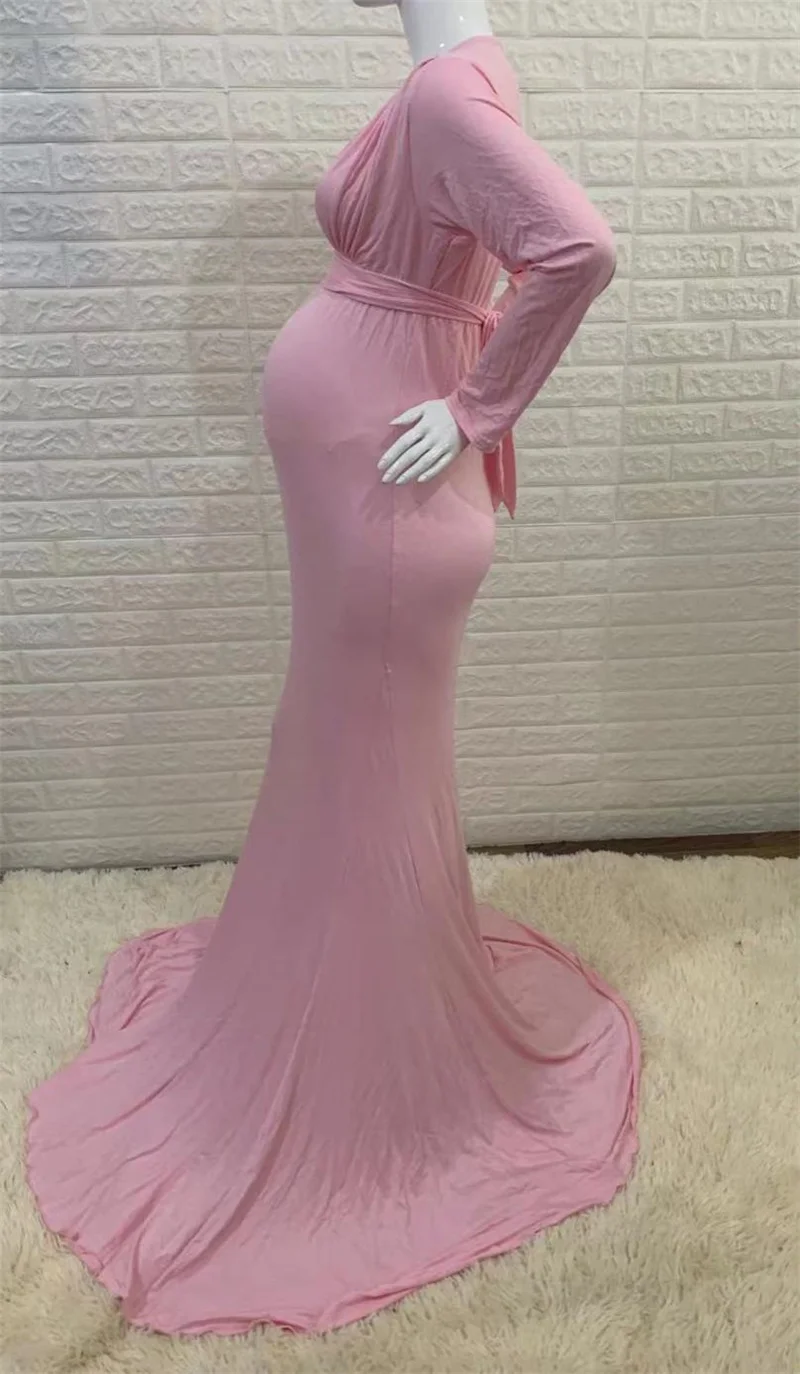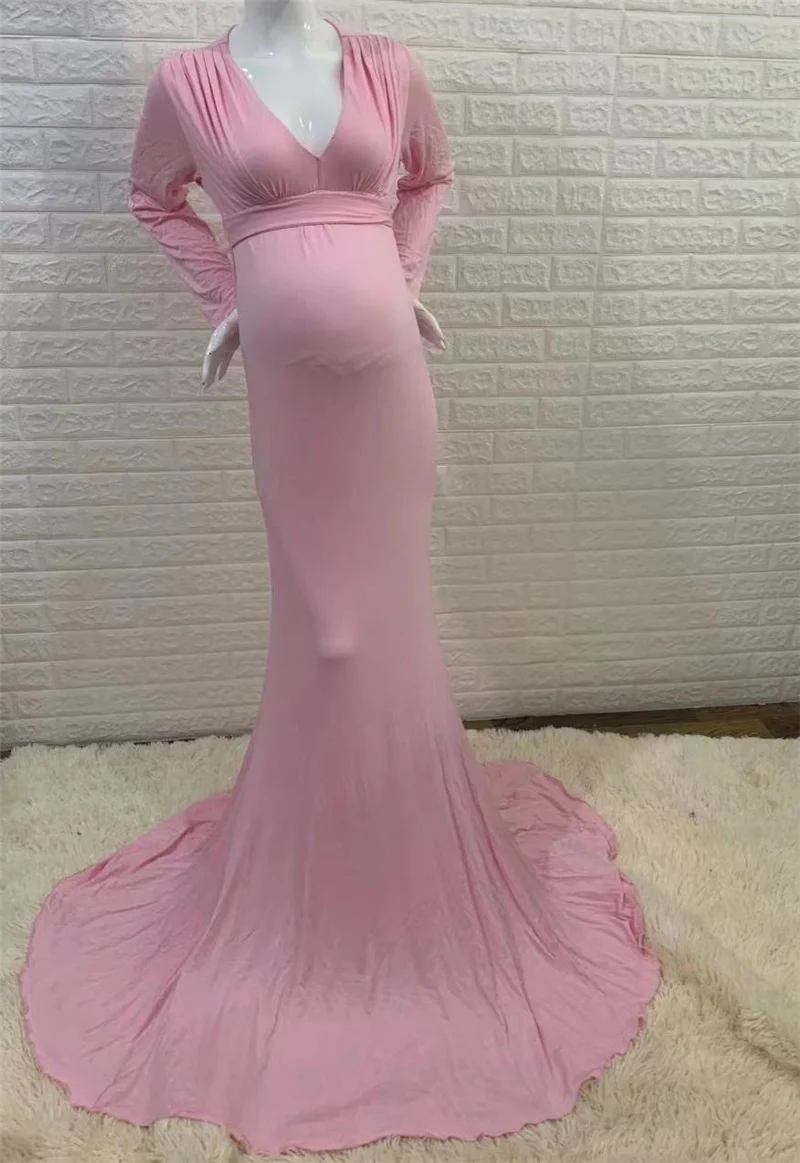 2024 Elegant Maternity Dresses For Photo Shoot Pregnant Women Dress Long Sleeve V-Neck Pregnancy Photography Shower Dress
