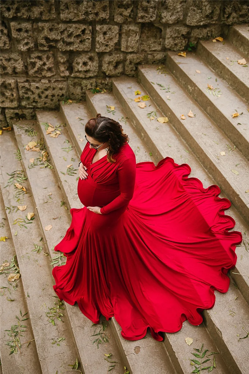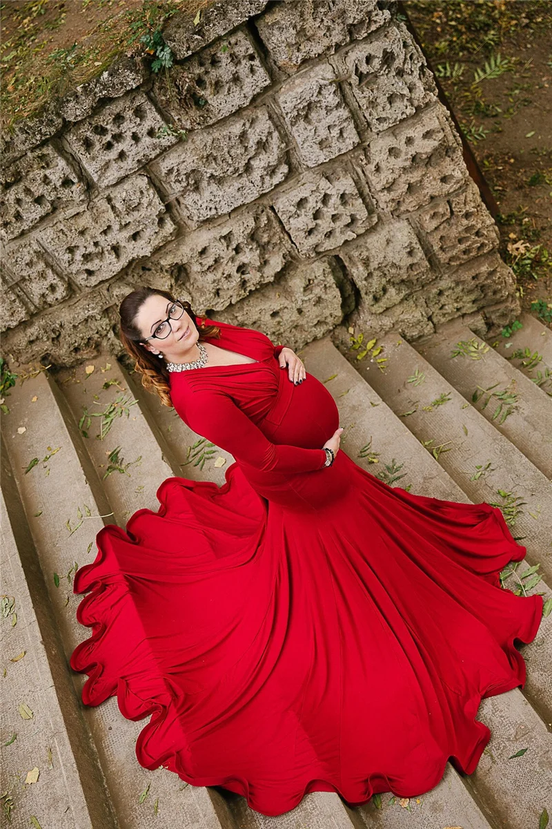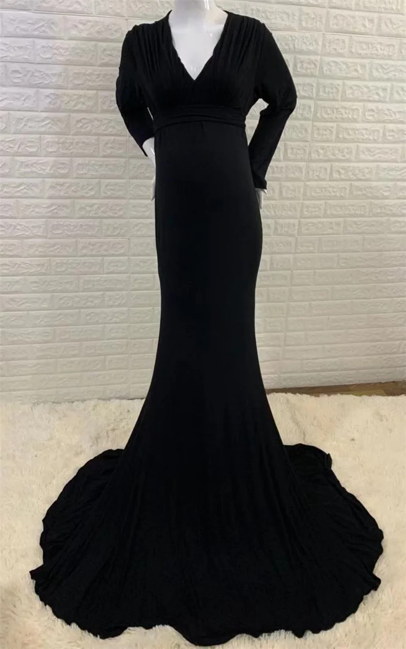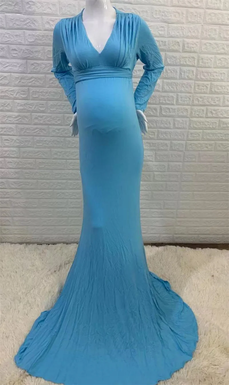 2024 Elegant Maternity Dresses For Photo Shoot Pregnant Women Dress Long Sleeve V-Neck Pregnancy Photography Shower Dress