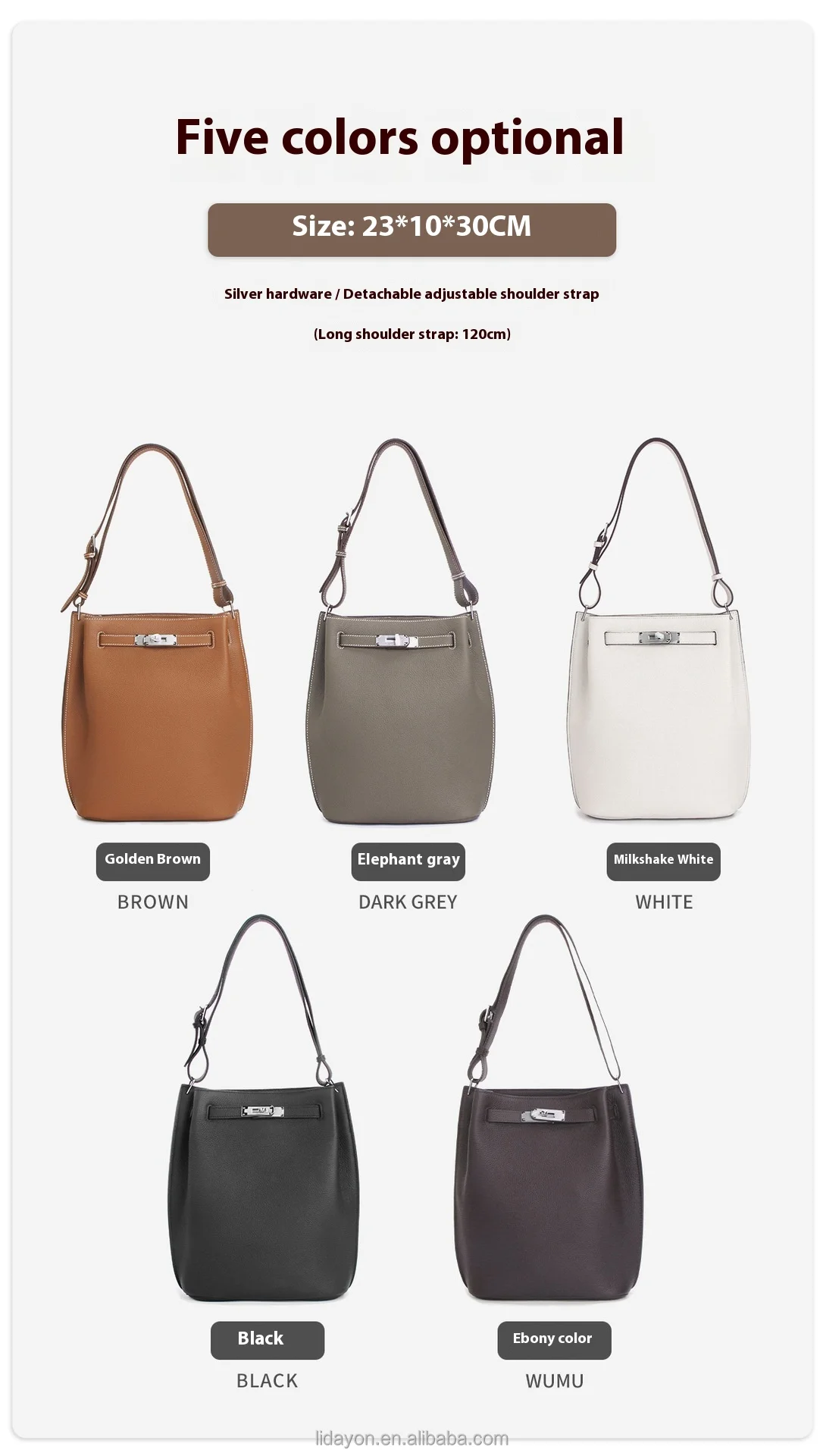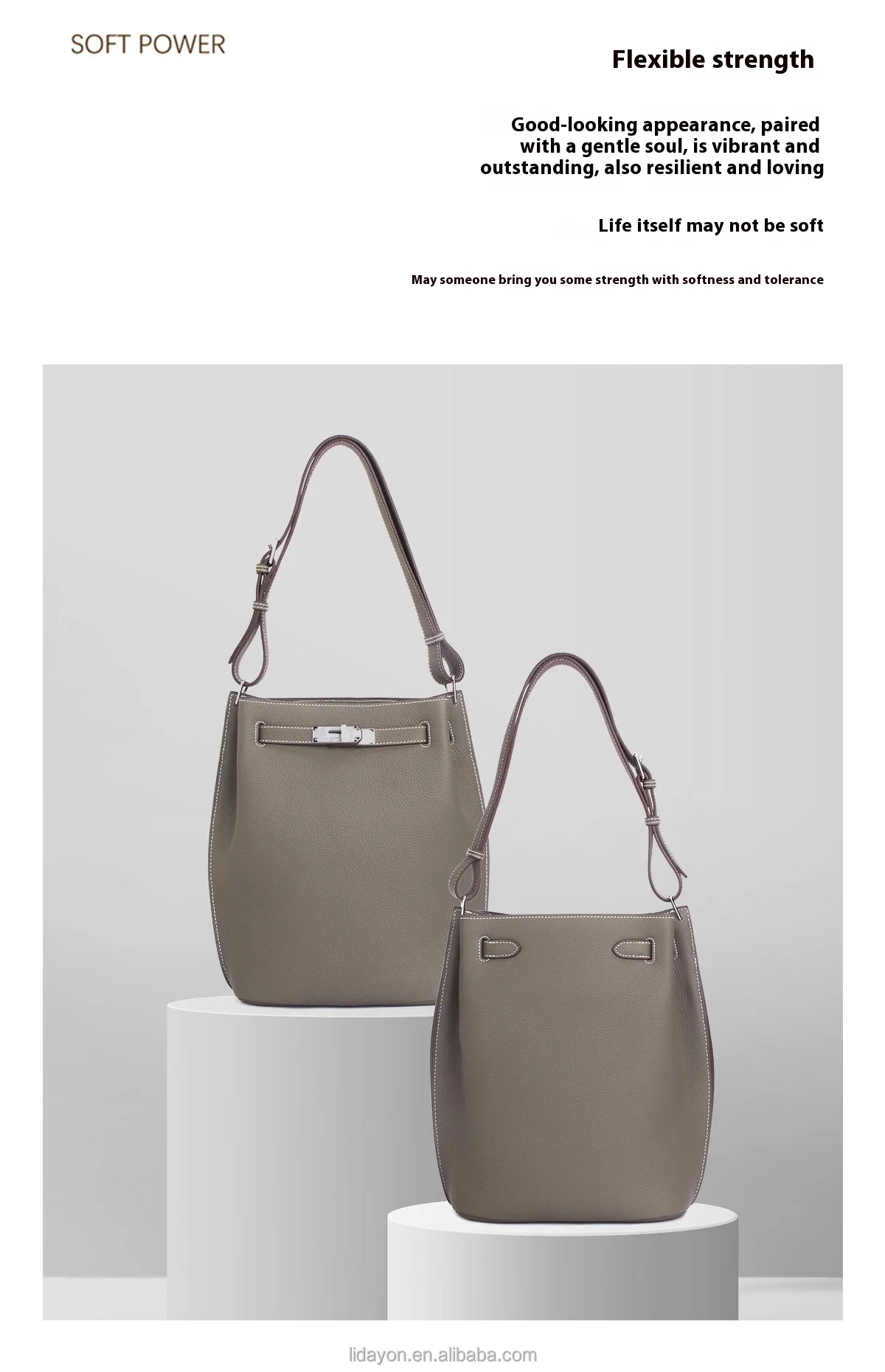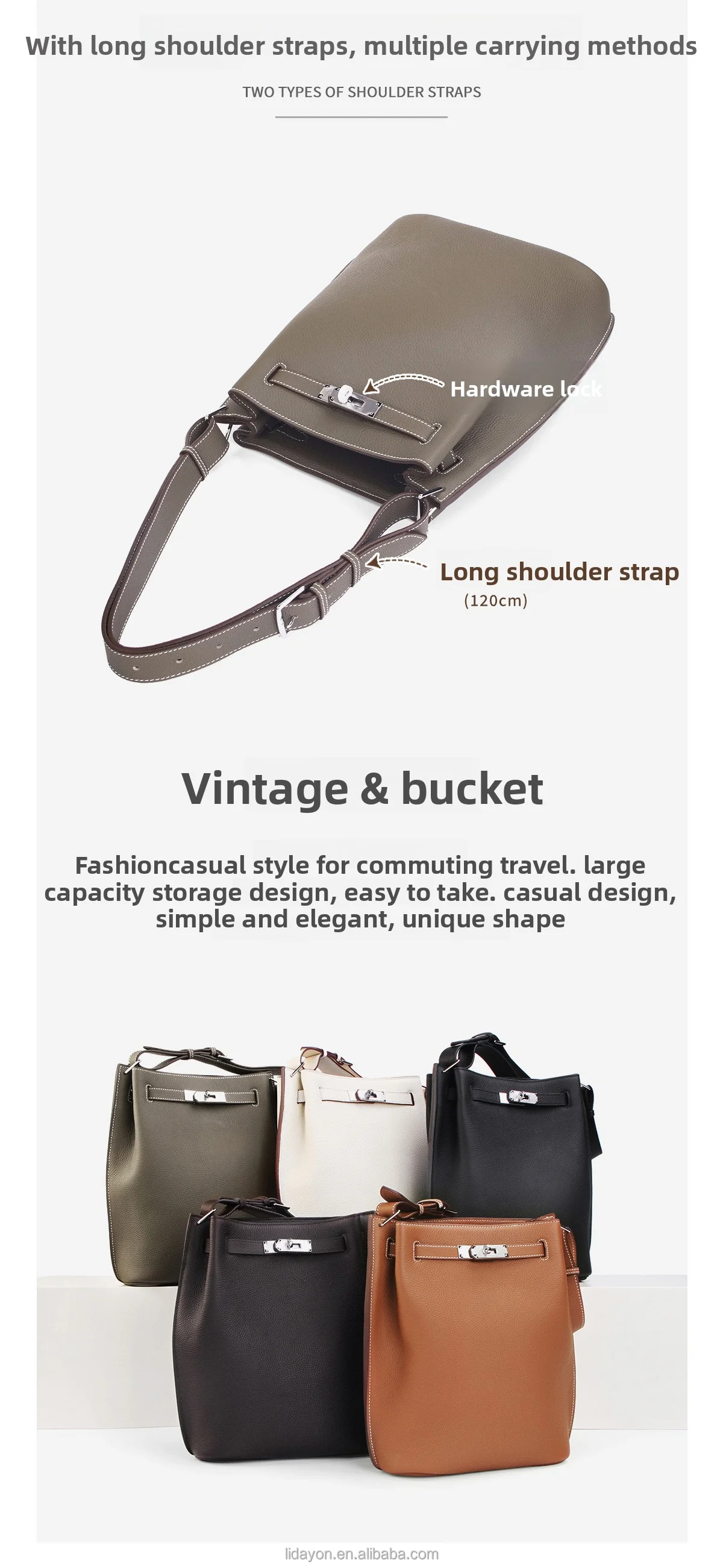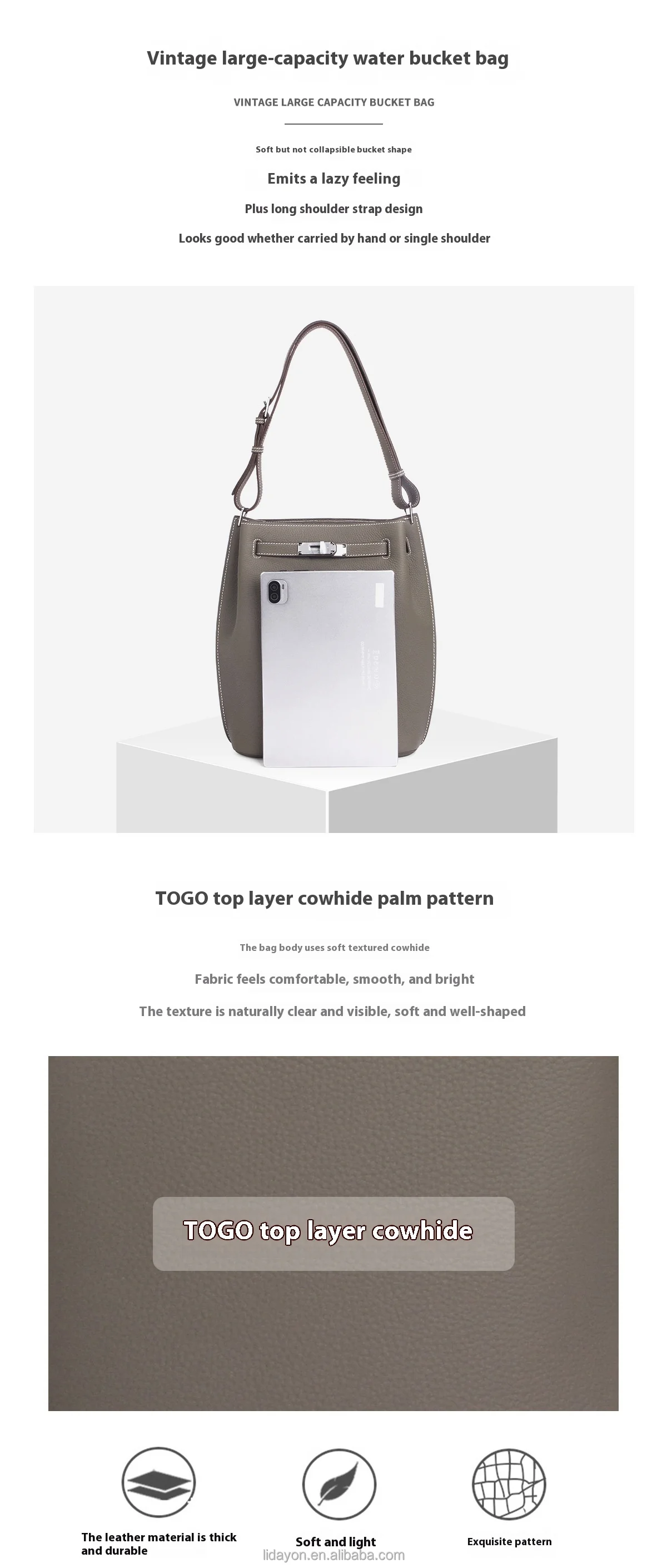 2024 Women's Trendy Togo Cowhide Bucket Bag New Luxury Genuine Leather Top Layer Large Capacity HandBags