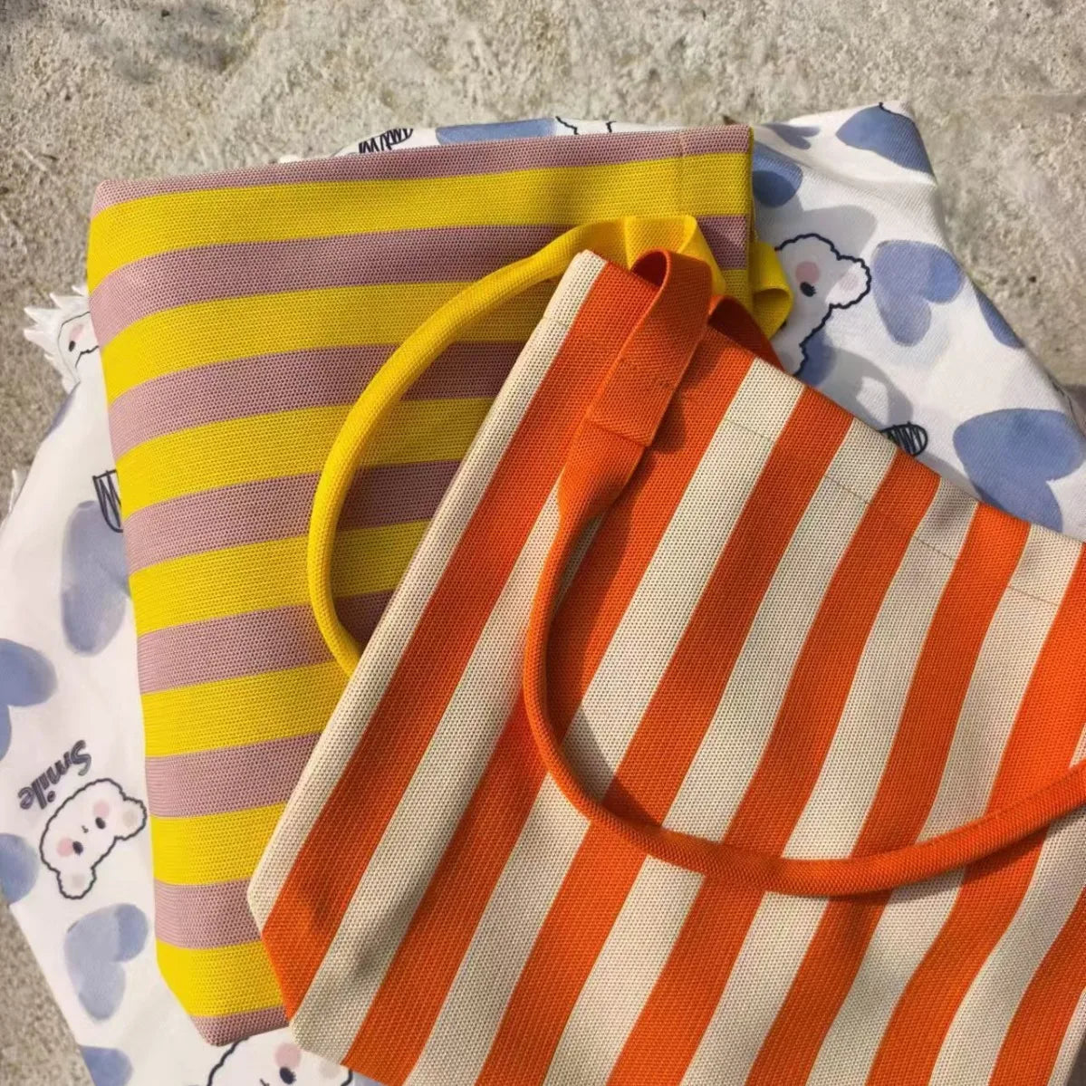 2025 New Large Capacity Striped Knitted Shoulder Bag for Women Fashionable Versatile High End Couple Travel Handbag