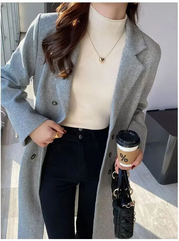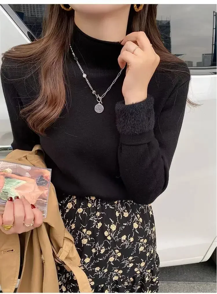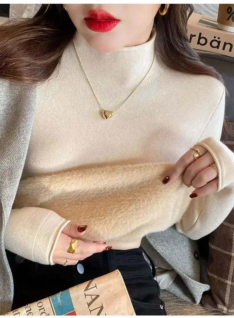 2025 Sweater For Women Casual Thick Warm Knit Plush Velvet Lined Pullover Tops Fall Winter Soft Knitwear Jumper New Slim Poleras