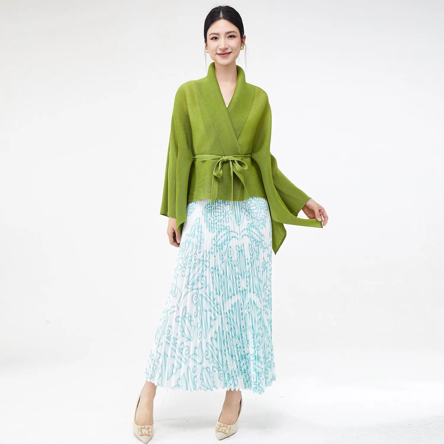 2025 Two piece women's elegant casual top and skirt Two piece women's pleated dress