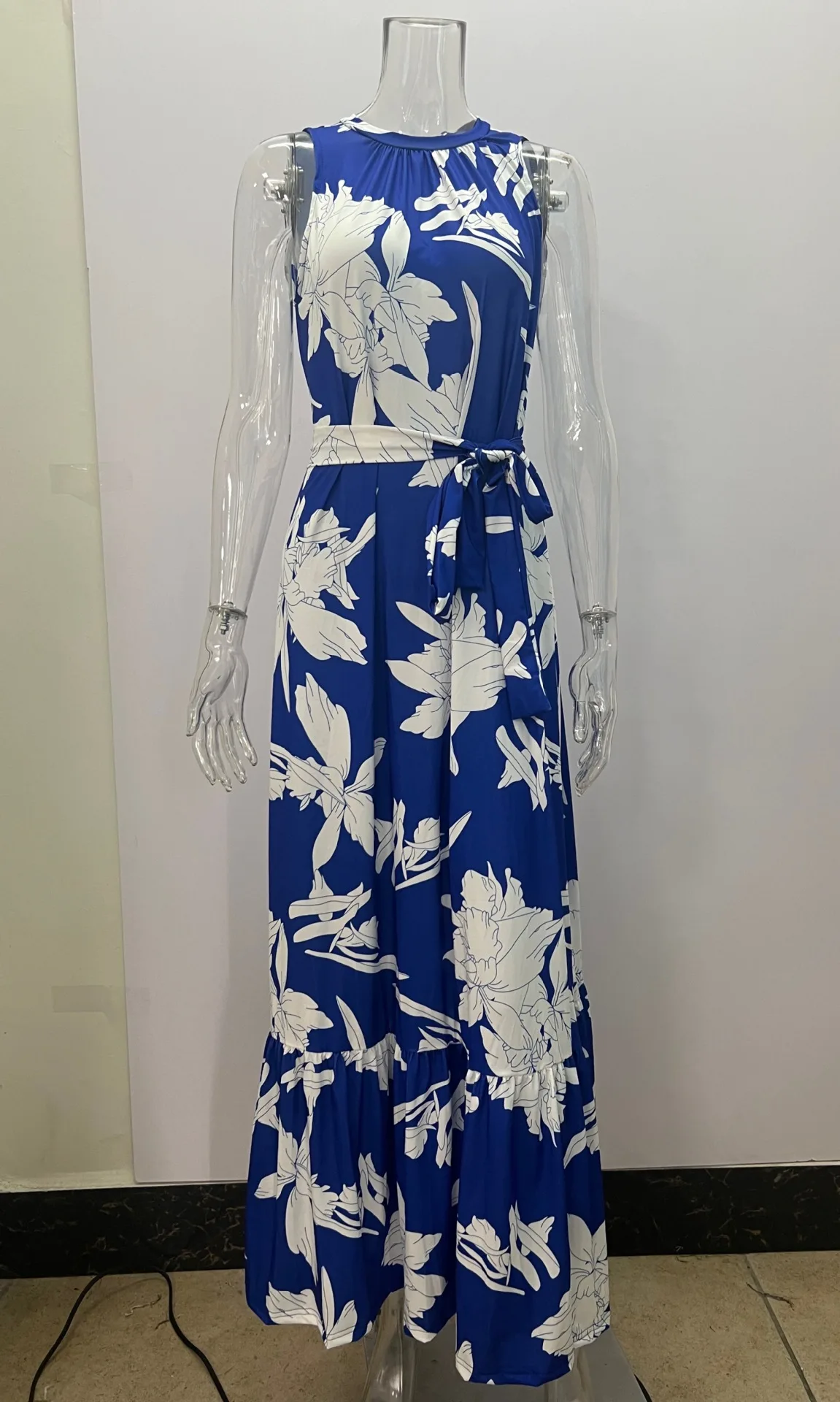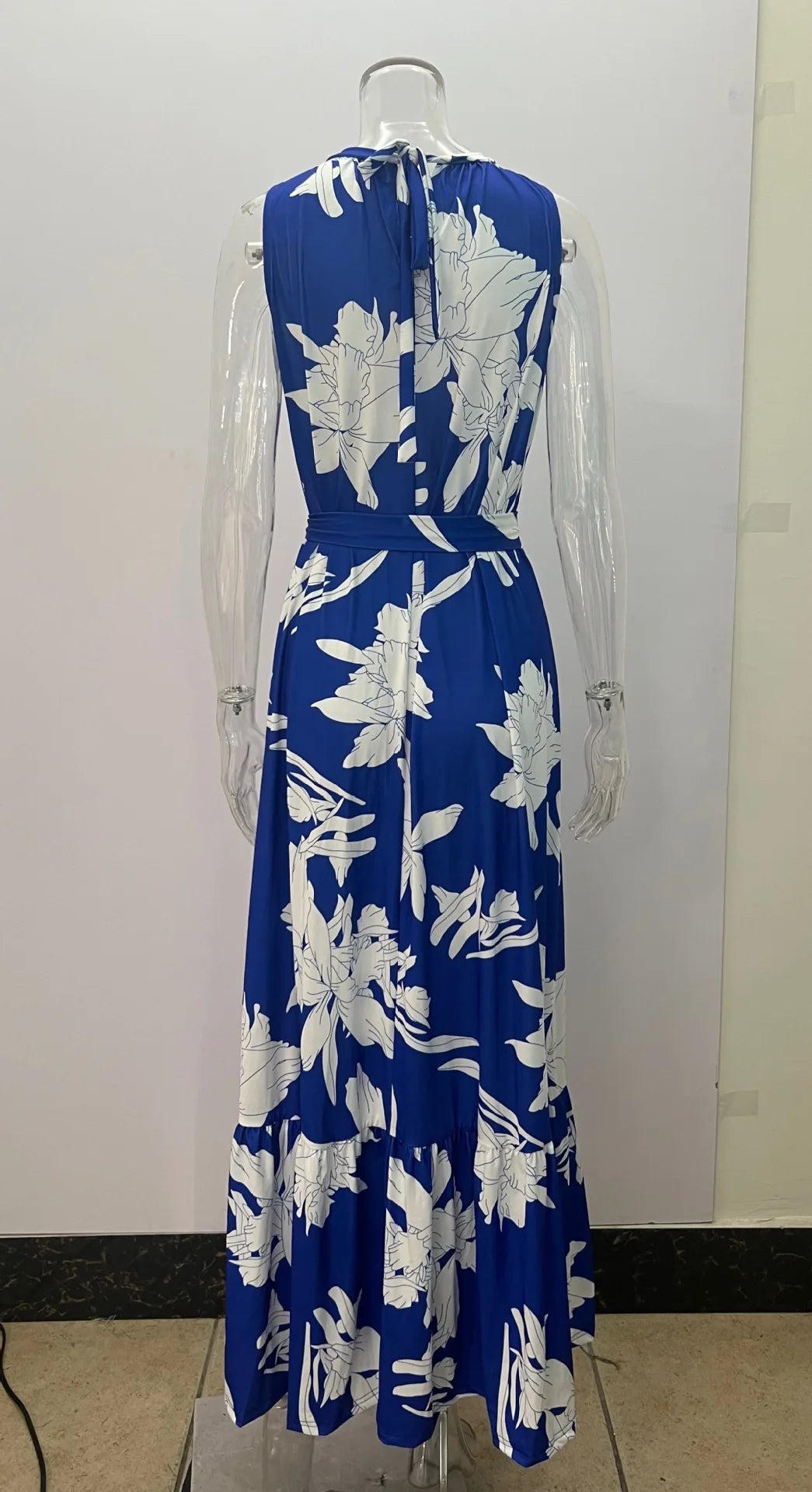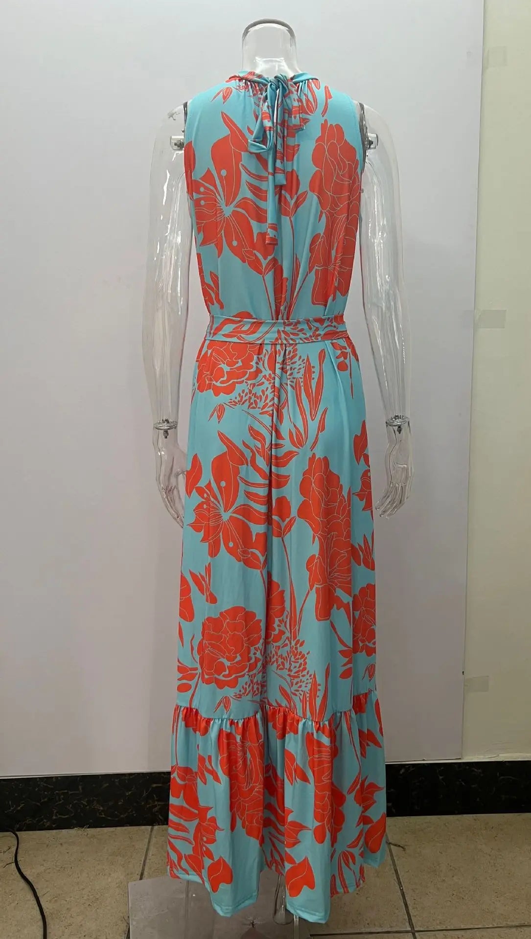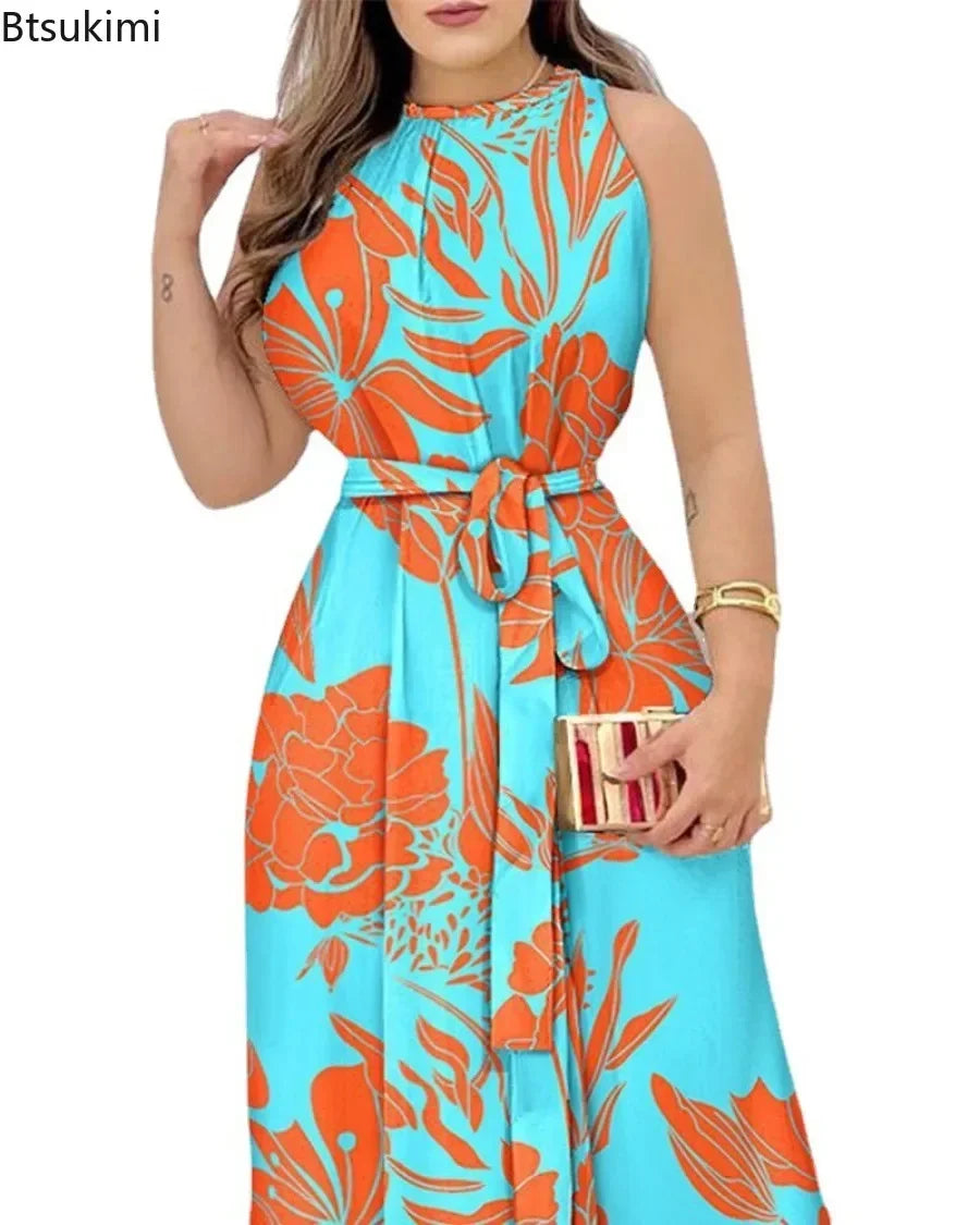 2025 Women's Elegant Floral Print Long Dresses Spring Summer Lace up Print Strap Dress Holiday Beach Female Robe Vesido Mujer