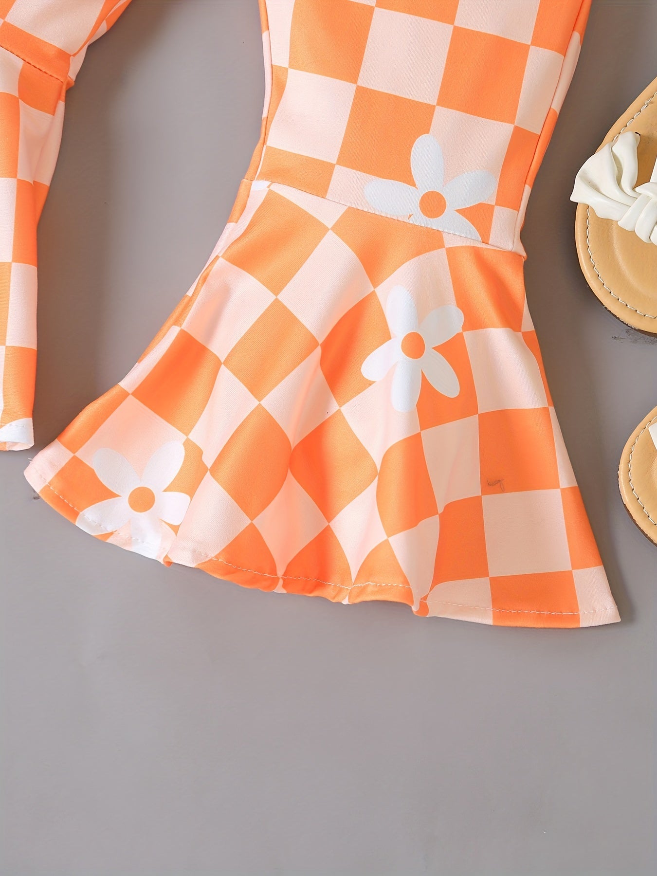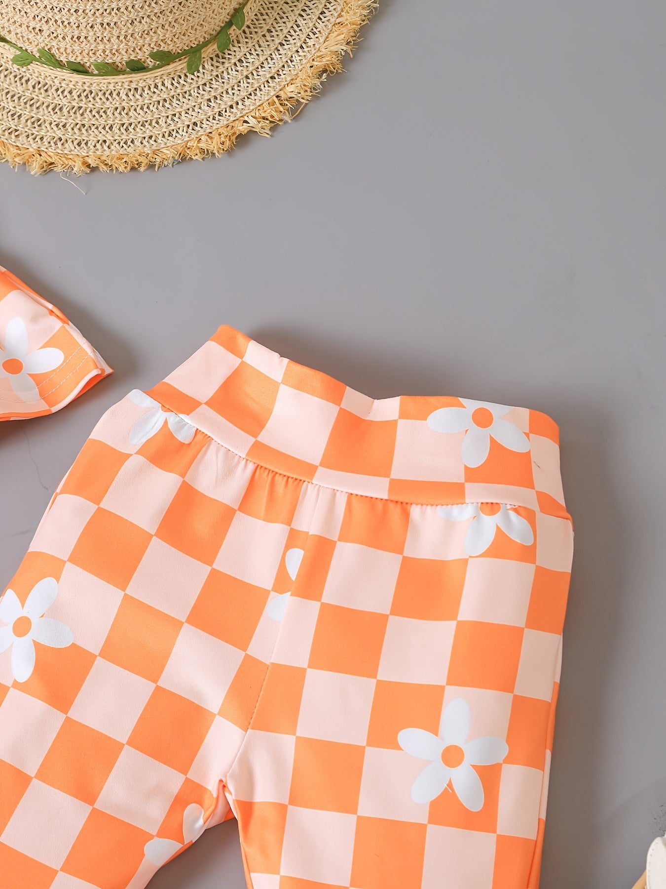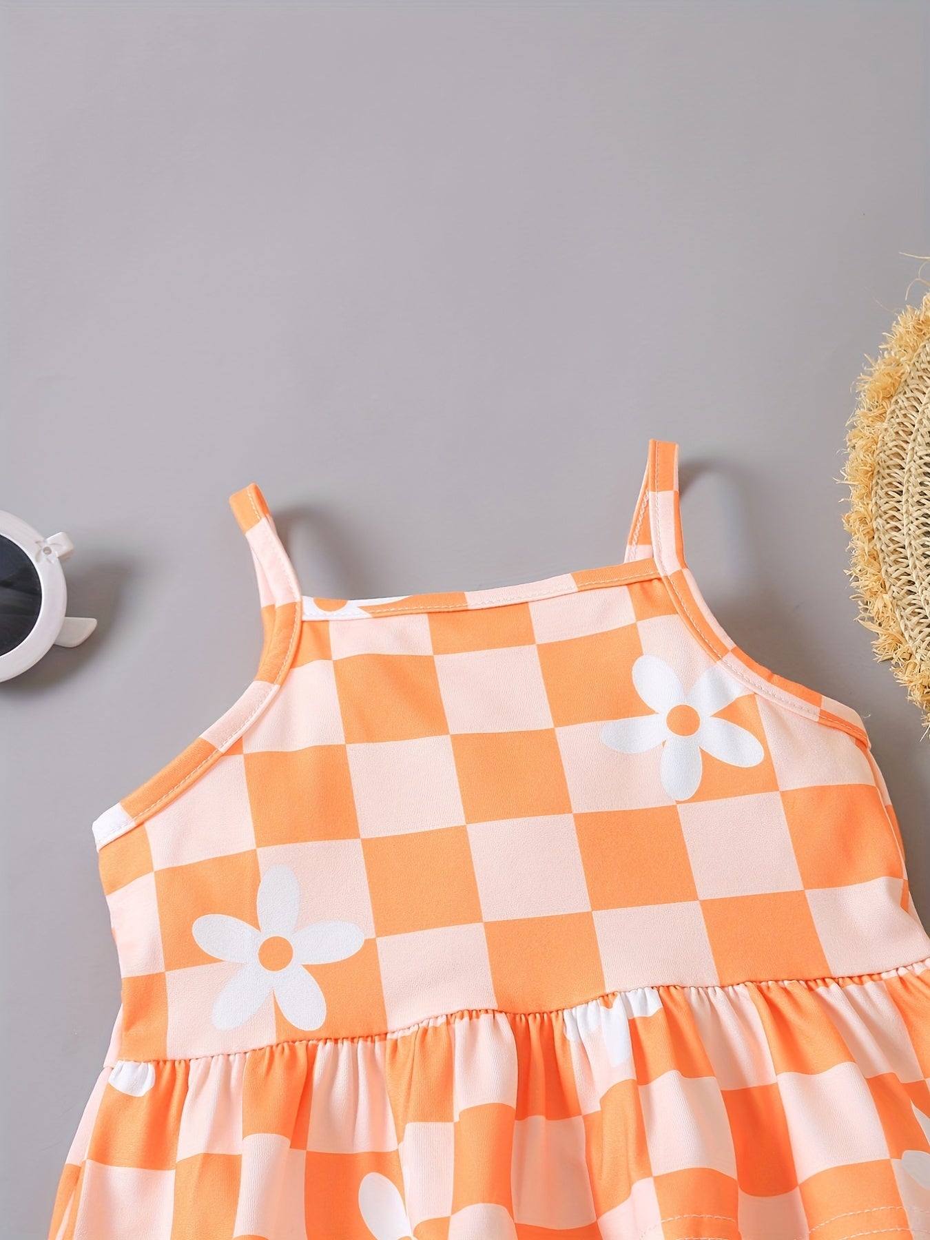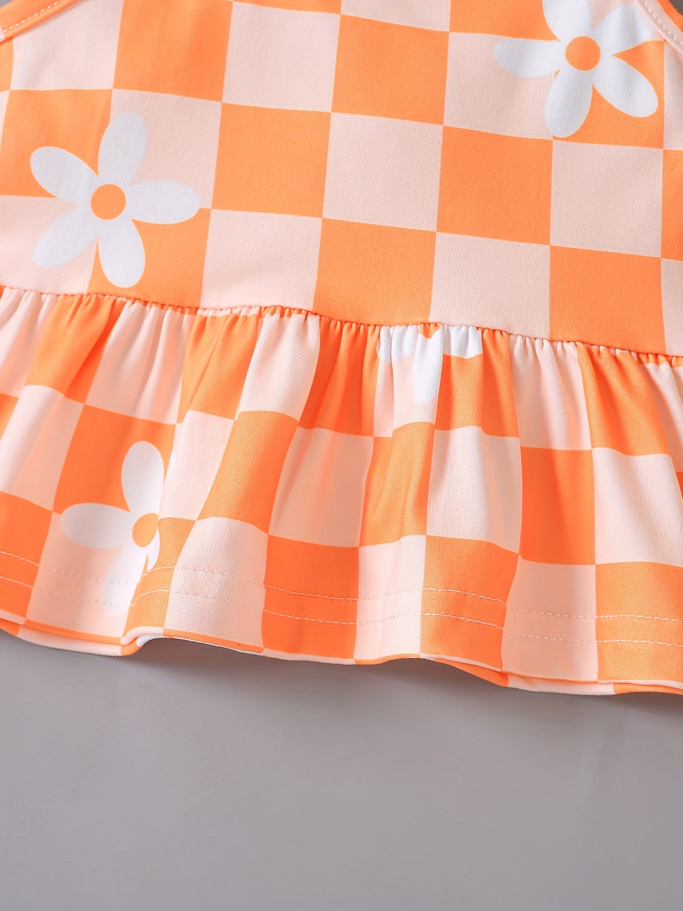 2pcs Adorable Baby Girls Floral Plaid Cami Tops & Flare Pants Set - Soft Medium Stretch Fabric, Ruffle Details, Sleeveless, Casual Style - Perfect for Spring/Summer Season