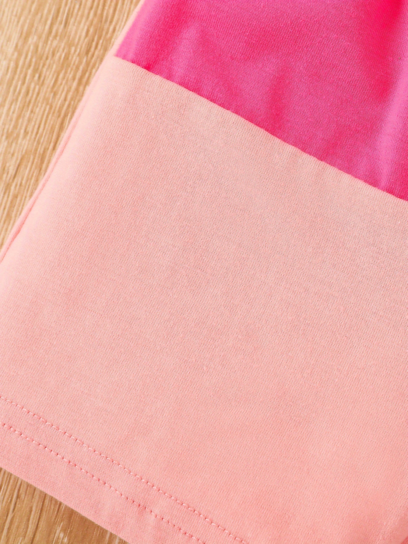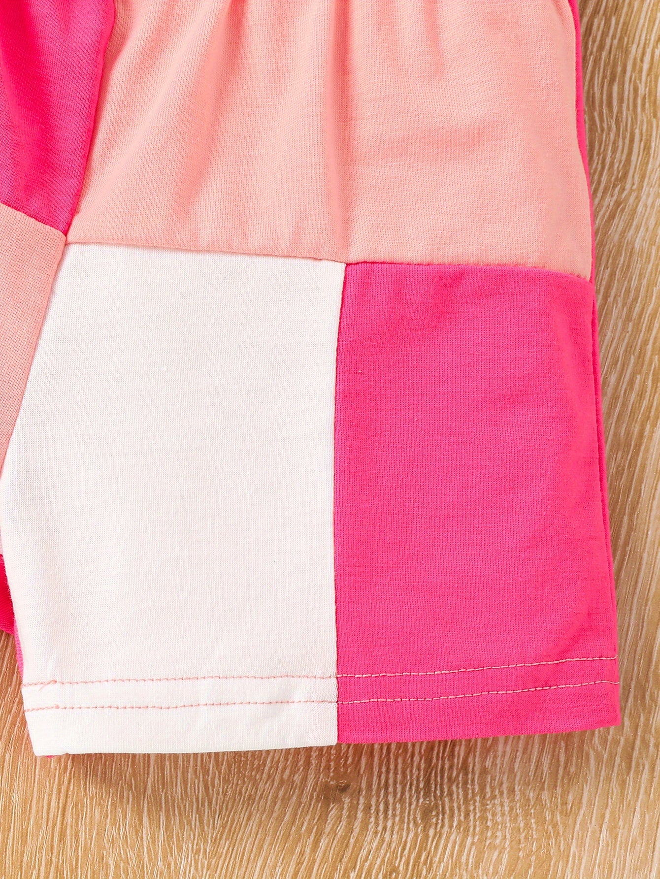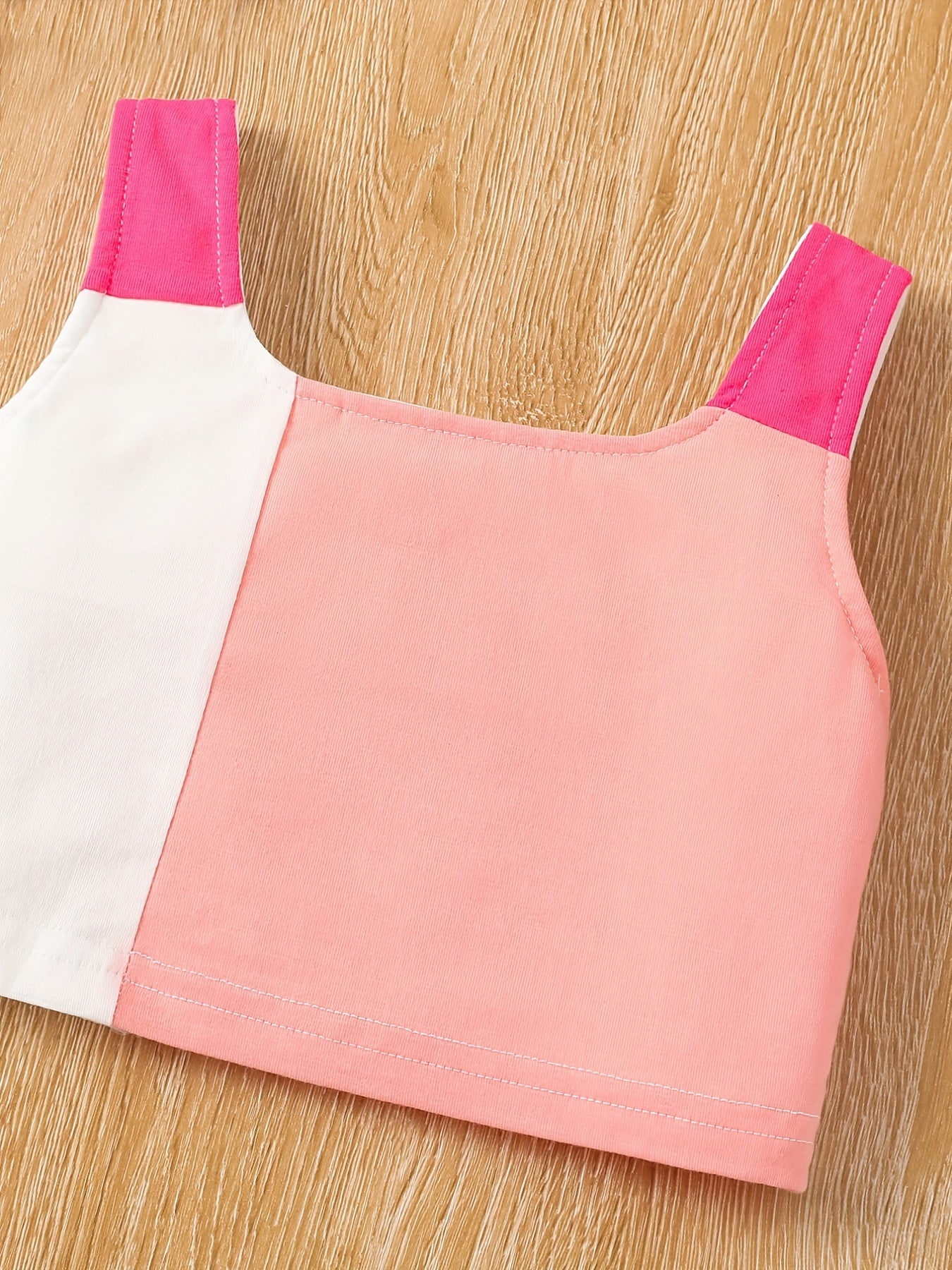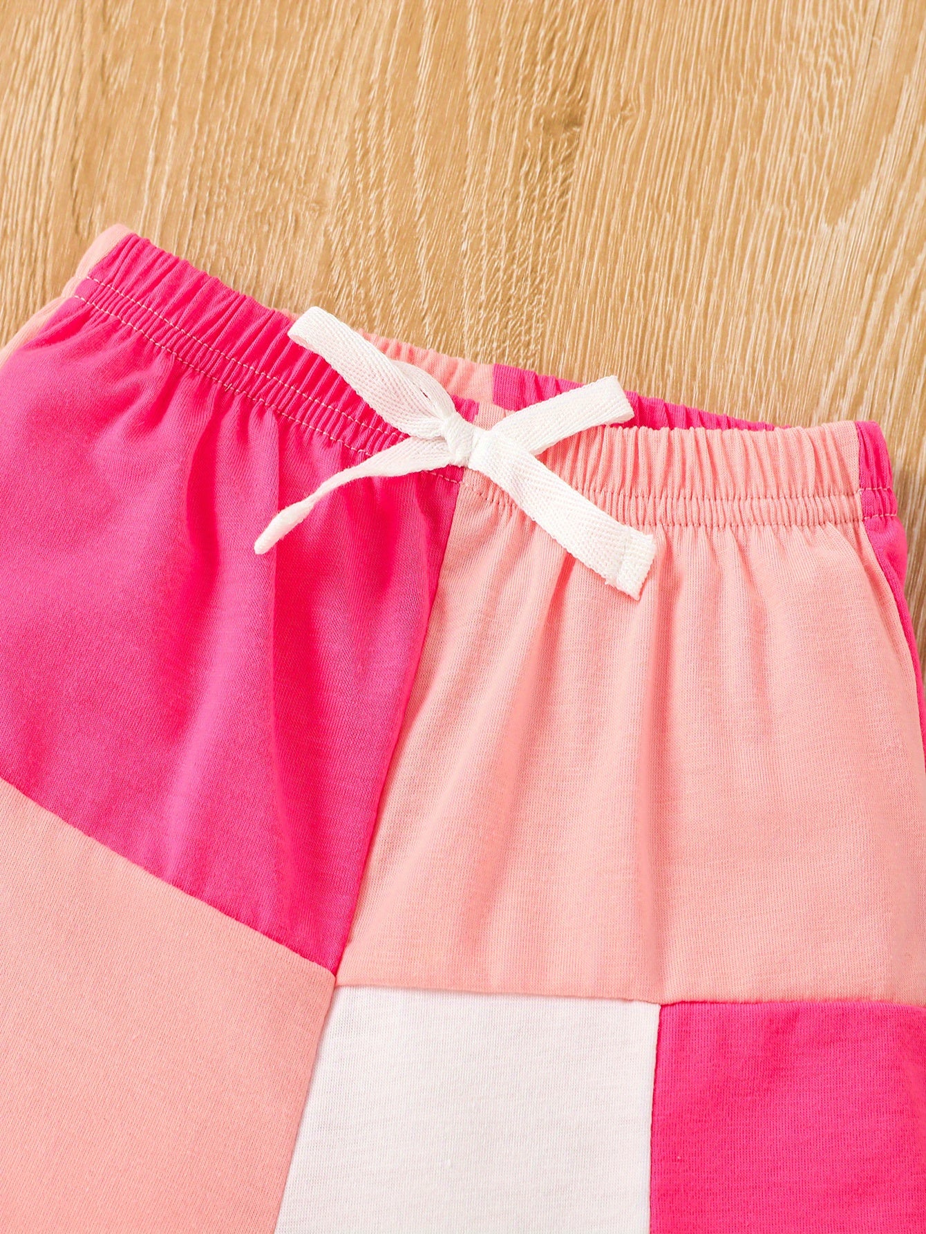 2pcs Toddler Girls Color Block Cami Tops & Bow Elastic Waist Plaid Shorts Set Kids Summer Clothes