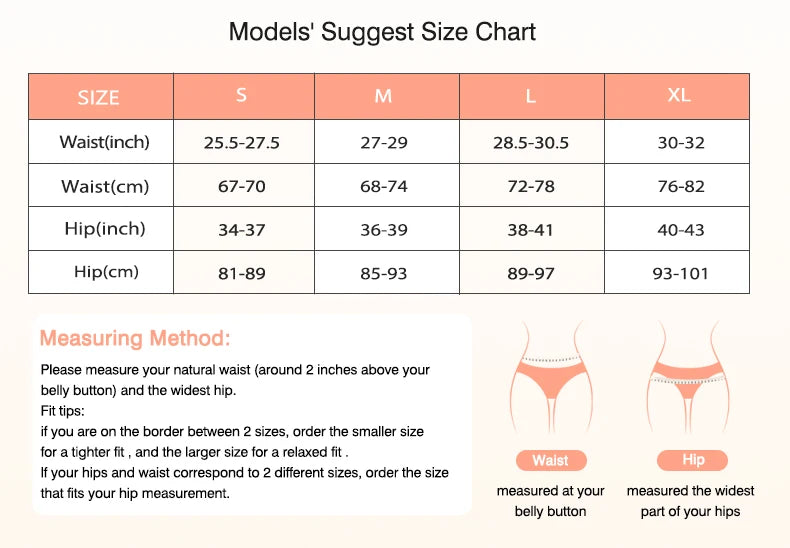 Please measure your natural waist(around 2 inches above your belly button) and the widest hip.
