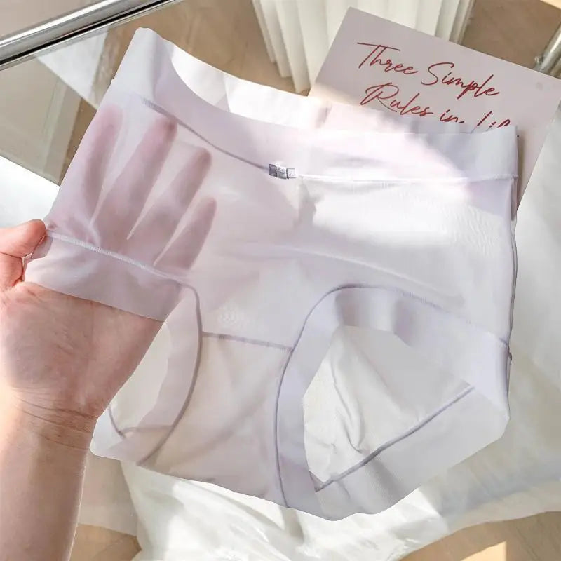 3PCS Women Seamless Panties Ice Silk Transparent Breathable Antibacterial Panty Mid-waist Briefs Cotton Underwear