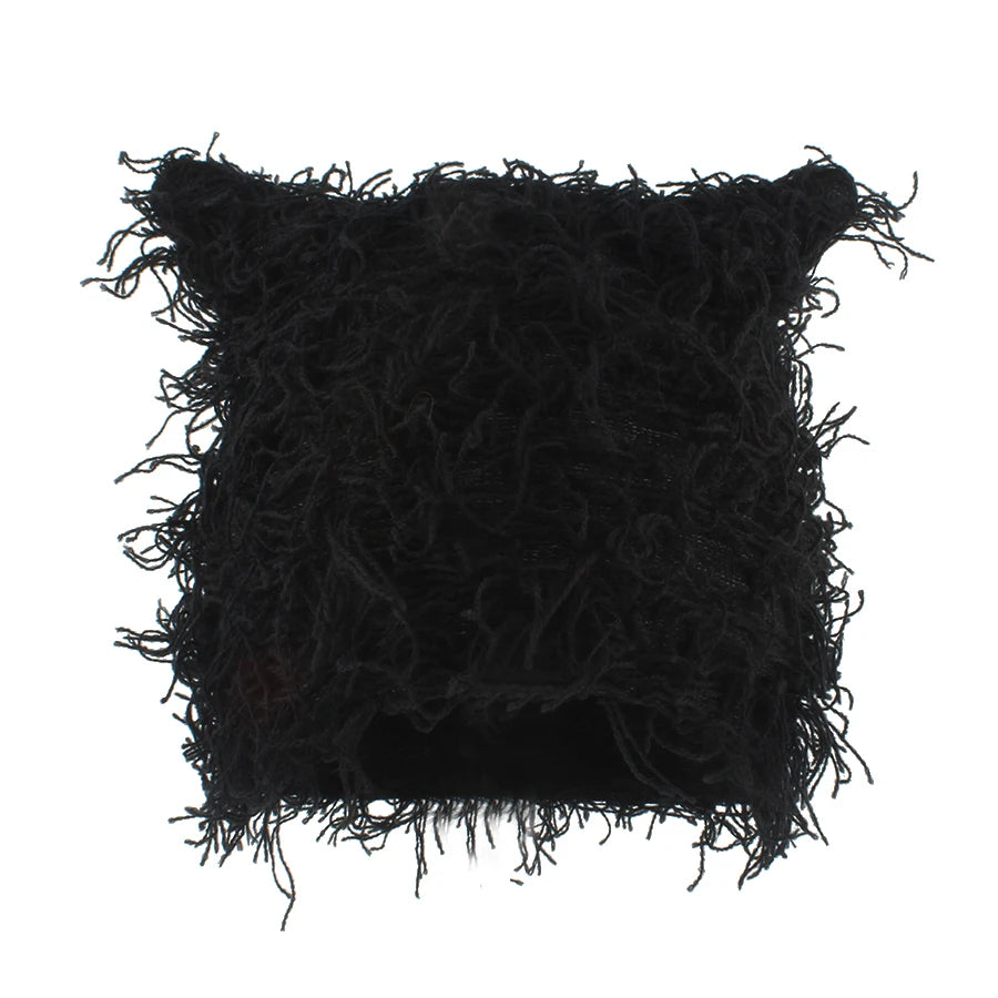Autumn Winter Hats For Women Cute Cat Ears Knitted Hat Unisex Fashion Street Punk Hip Hop Caps Balaclava Black Pink Skullies Bea