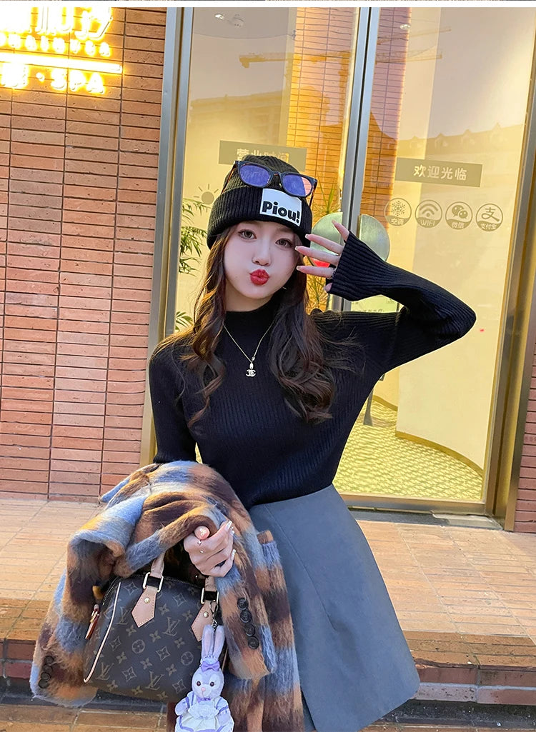 Autumn Winter Sweater Women Pullovers Long Sleeve Tops Clothes Slim Knit Soft Jumper Streetwear Button Turtleneck Sweater