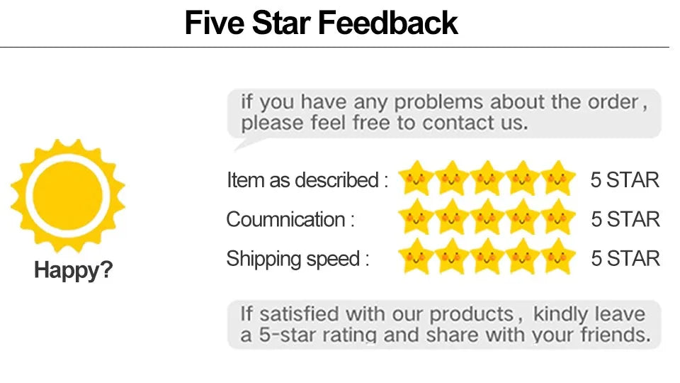 --Your satisfaction and positive feedback is very important to us. Please leave a positive feedback and 5 stars if you are satisfied with our items and services.