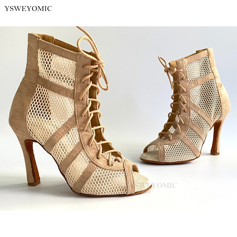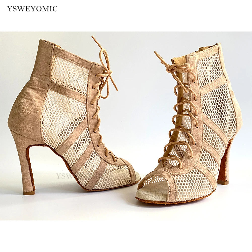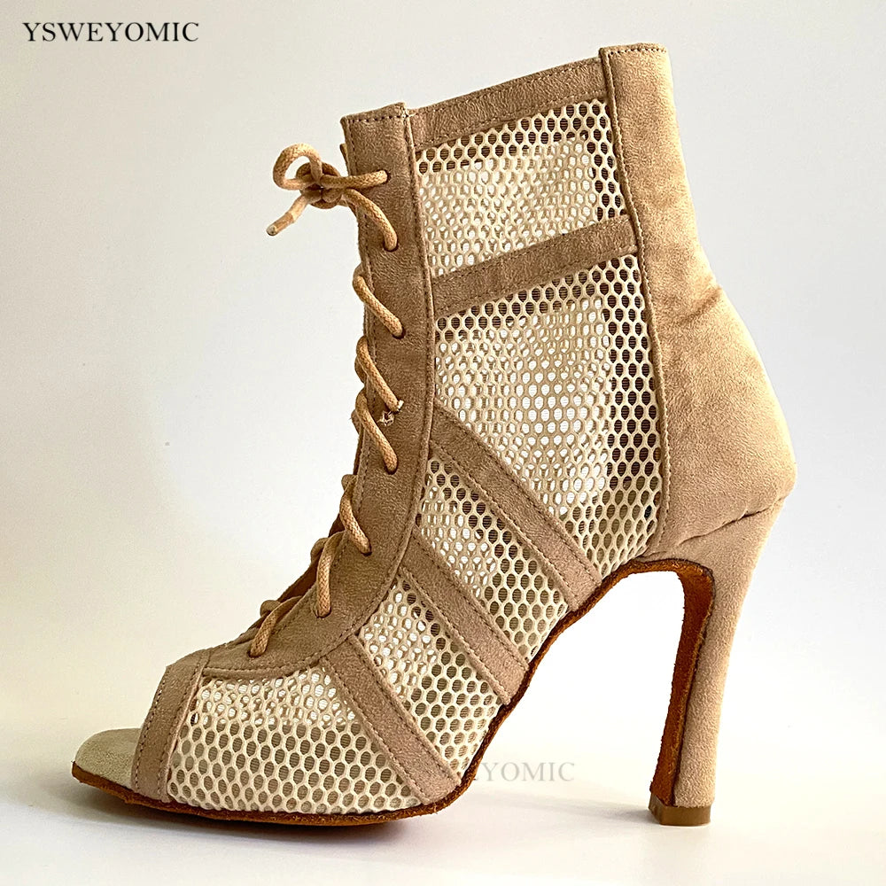 Bachata Dance Booties 2022 Khaki Black Salsa Dance Shoes Latin Dance Shoes Women Social Dancing Indoor Outdoor