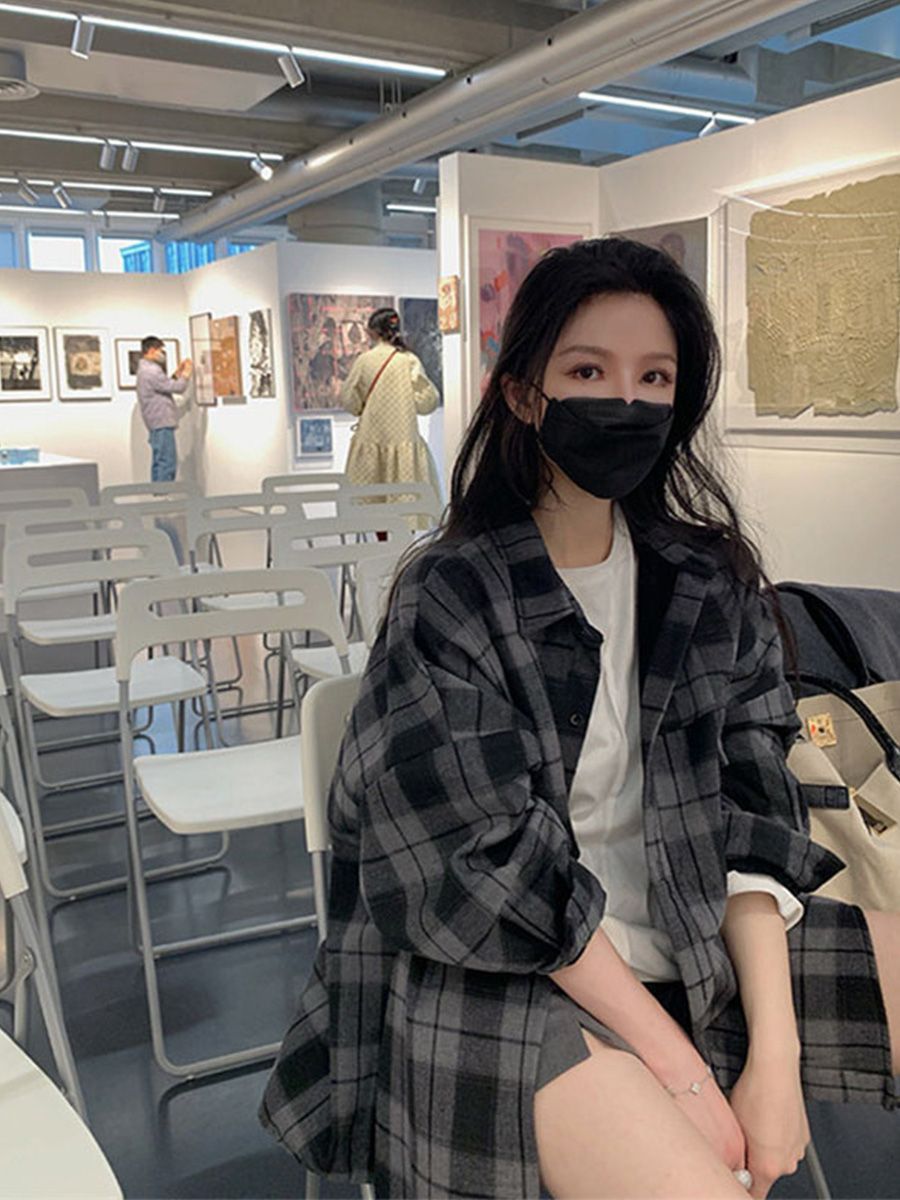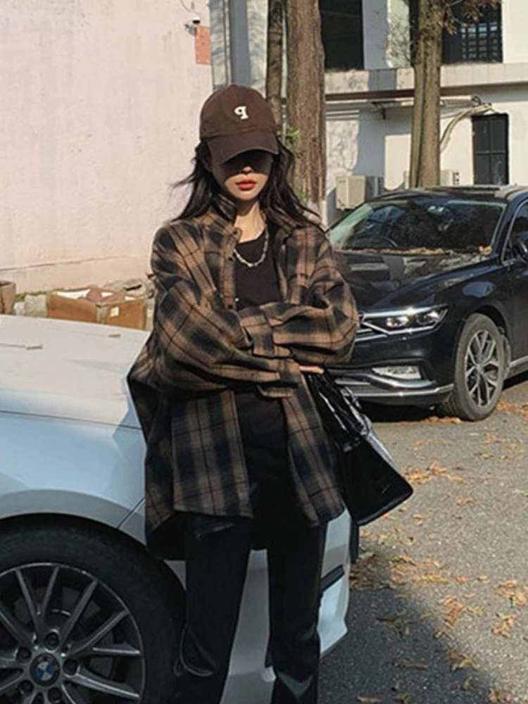 Basic Jackets Women Long Sleeves Loose Plaid Classic Gentle Students Leisure Outerwear Autumn New Arrivals Vintage Fashion Chic