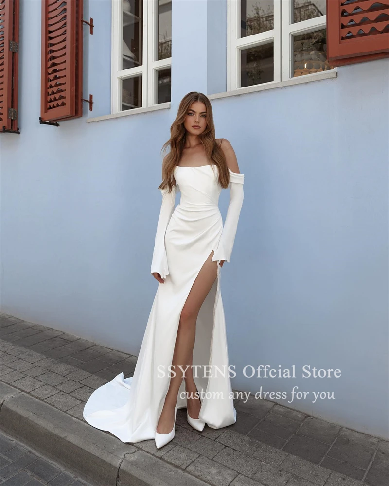 Beach Wedding Dresses For Bride Removable Long Sleeves Mermaid Wedding Gowns for Bride High Slit Custom Princess Bridal Gown