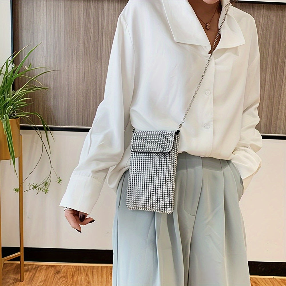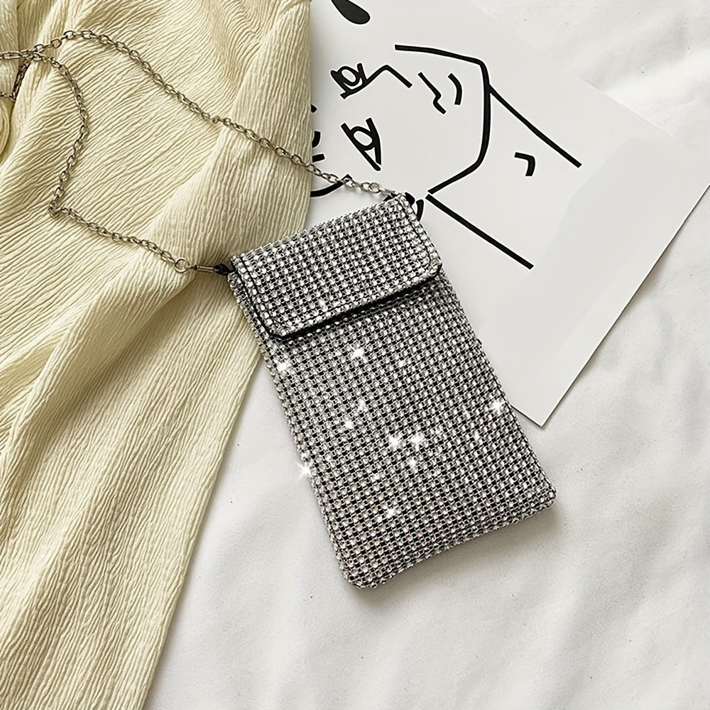 Bling Crossbody Purse Rhinestone Evening Handbags Clutch Cell Phone Wallet For IPhone Samsung