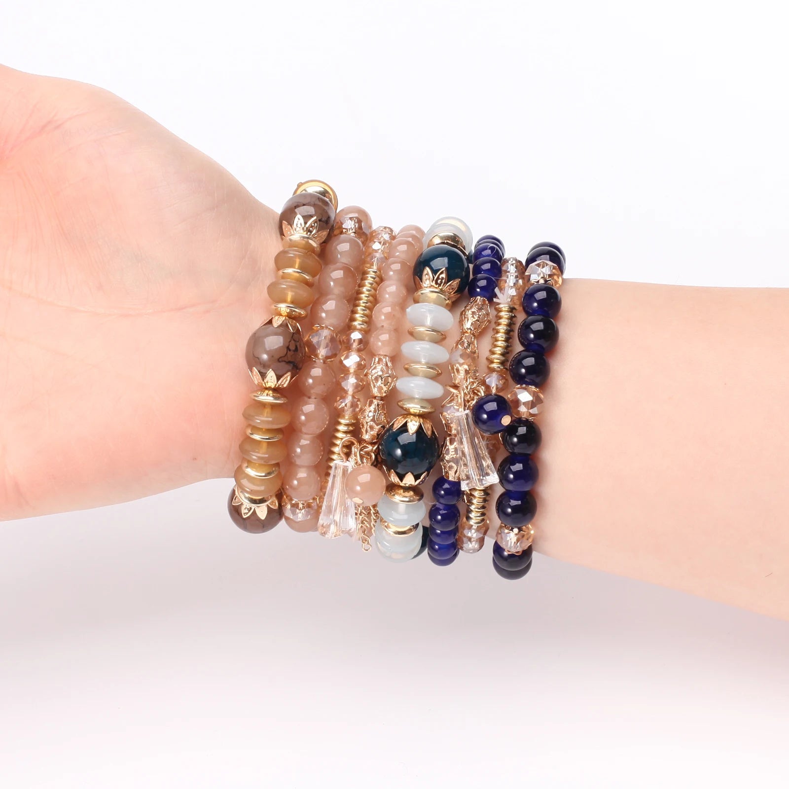 Bohemian Stackable Bead Bracelets for Women Multilayered Bracelet Pendant Charm Stretch Bangles