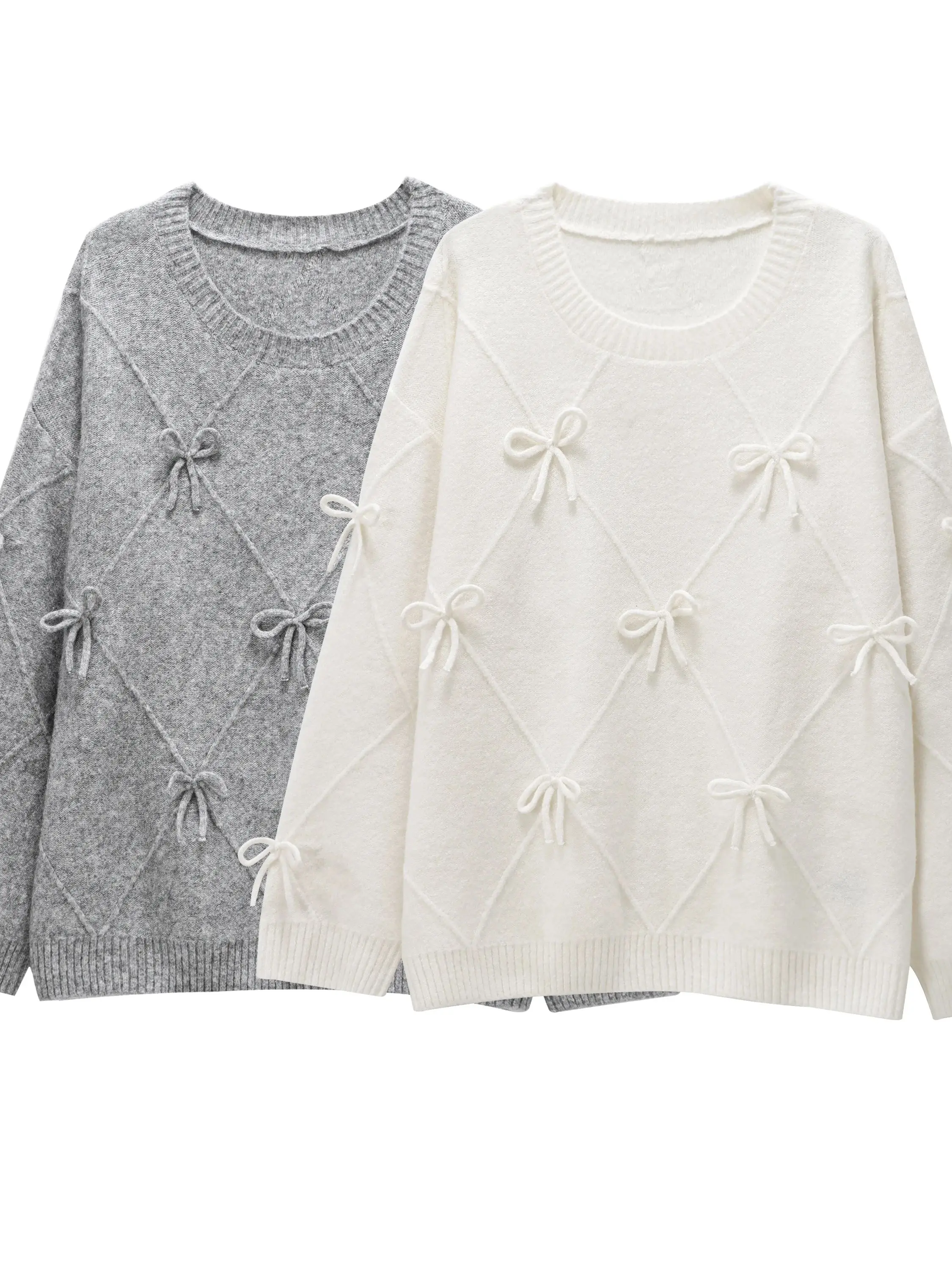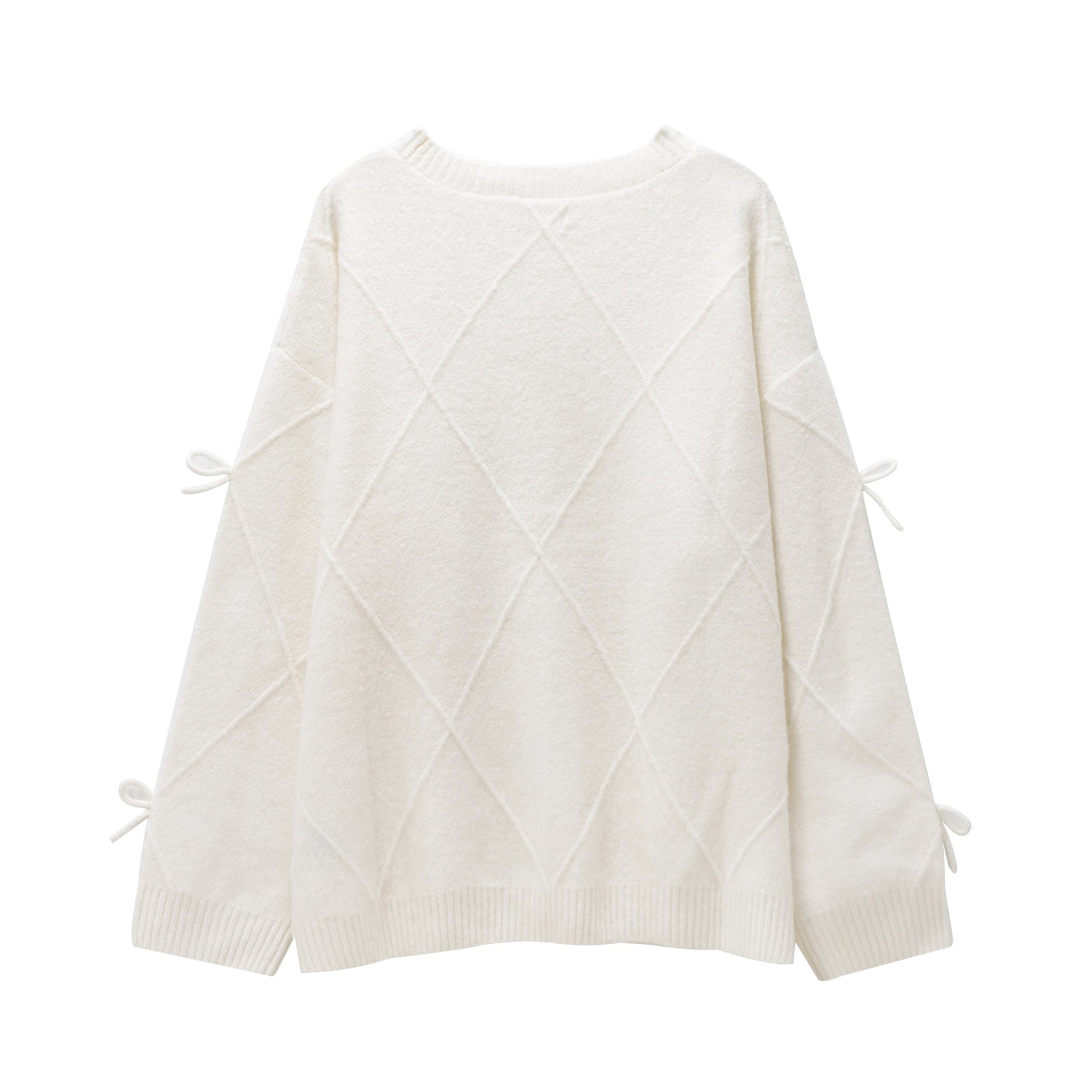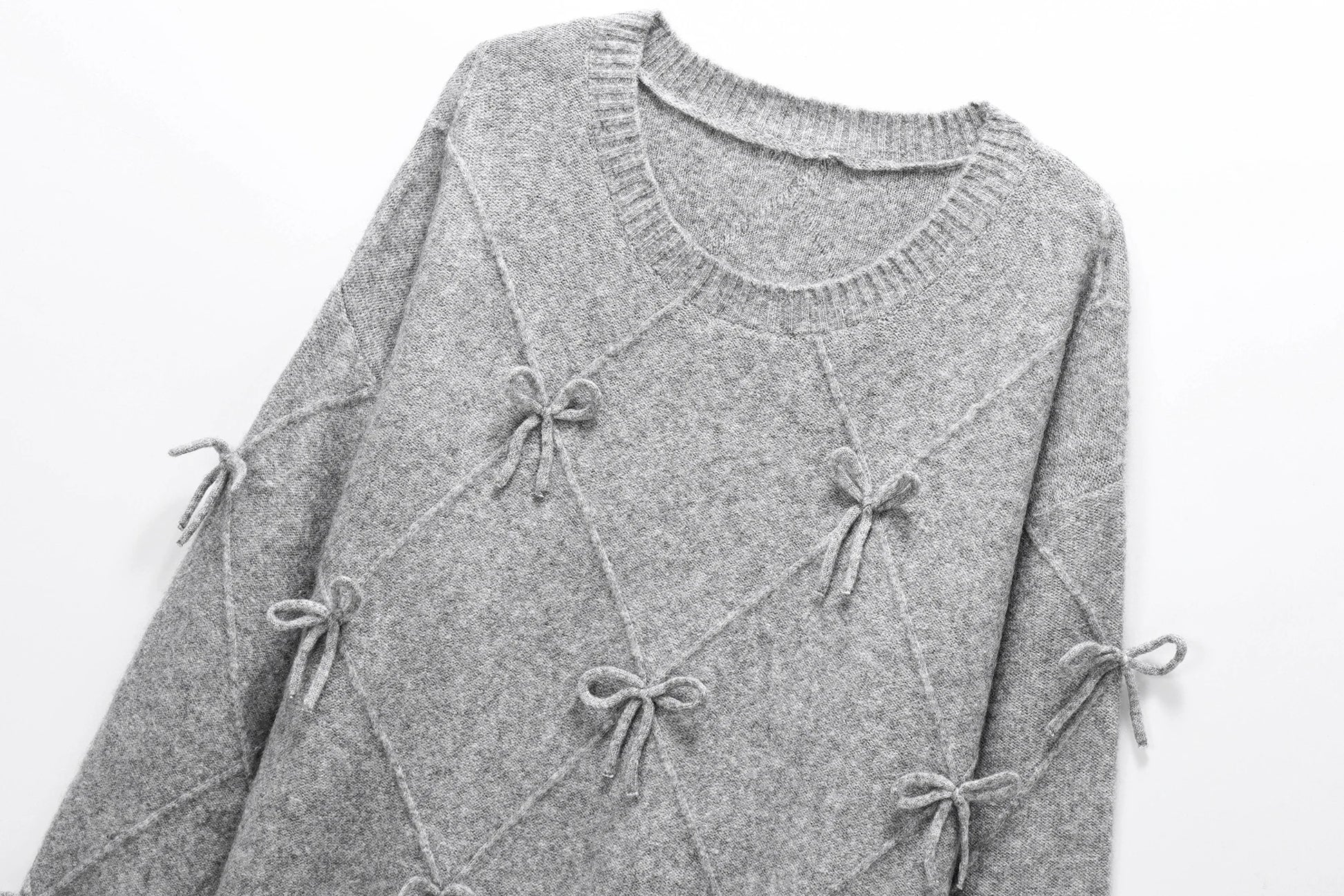 Bow Sweater Women Autumn Winter New Lazy Style Loose Outer Wear Design Anti-aging Knitted Pullover Top 1269568