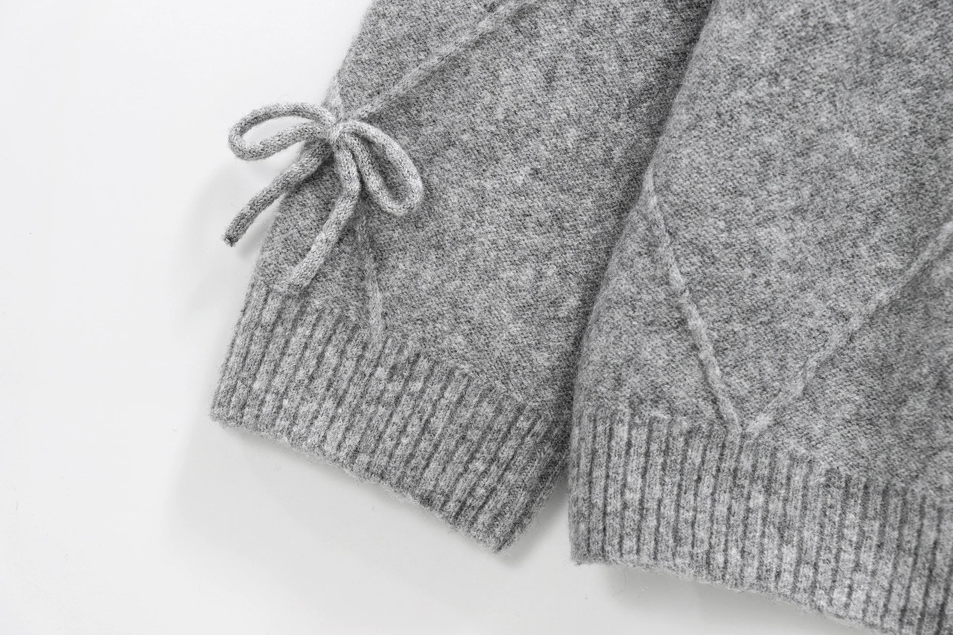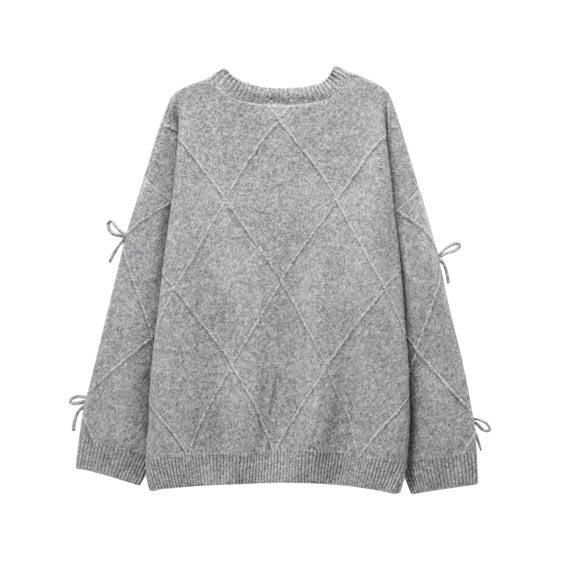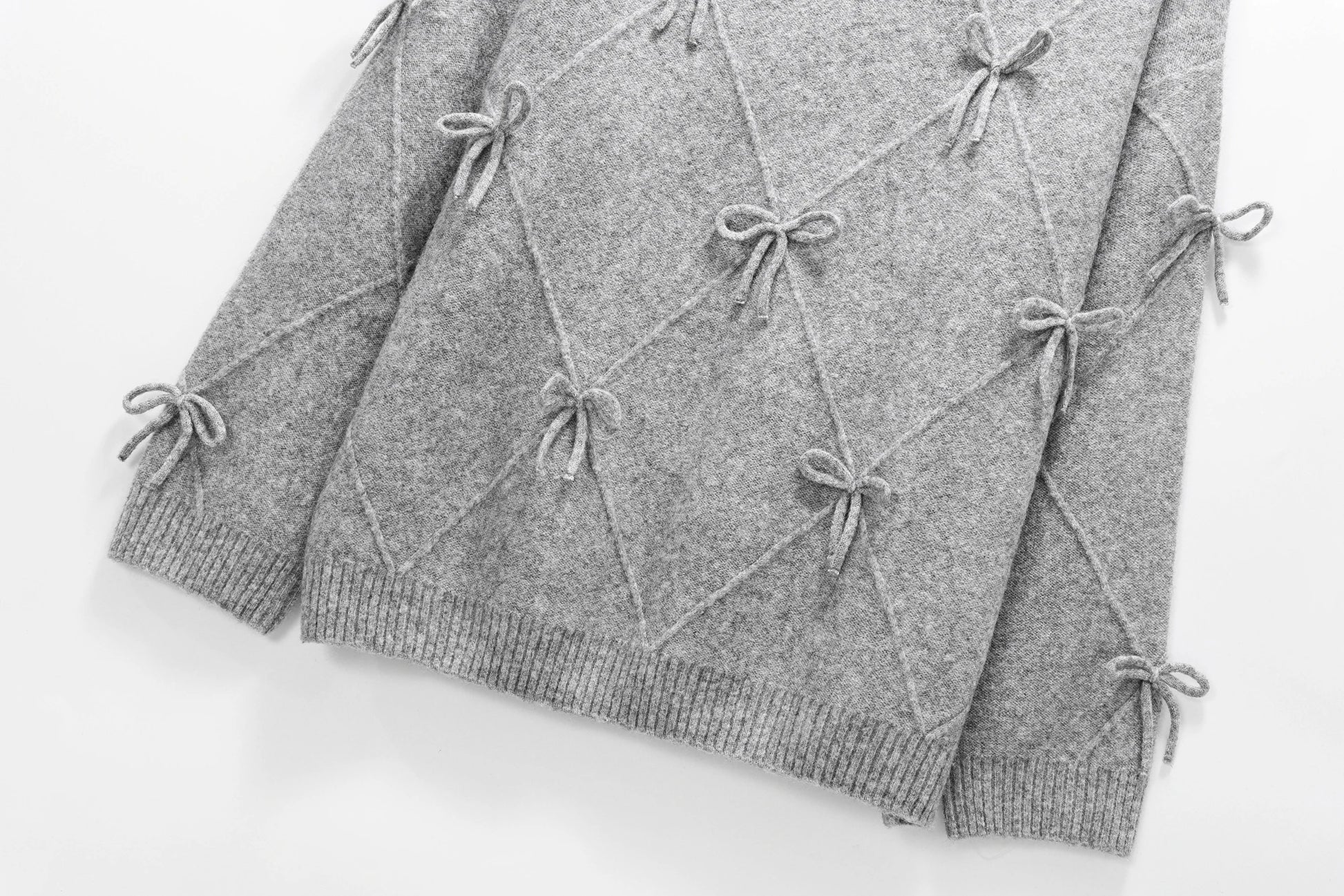 Bow Sweater Women Autumn Winter New Lazy Style Loose Outer Wear Design Anti-aging Knitted Pullover Top 1269568