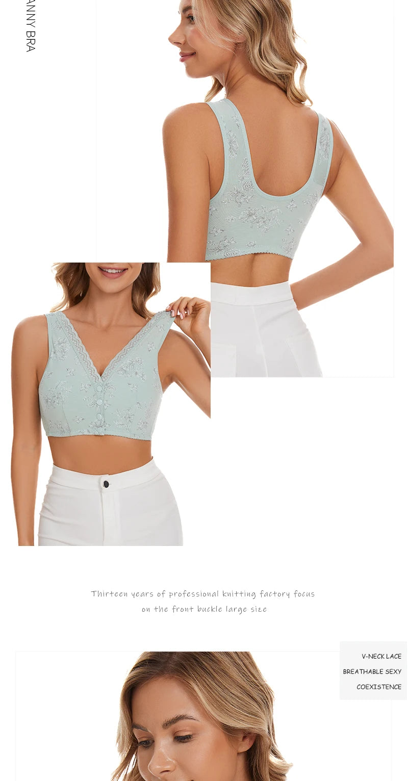 Bra Cotton Women Wire Free Bras Front Closure Brassiere Female Confortable Underwear Big Size 52BC 50BC Cup