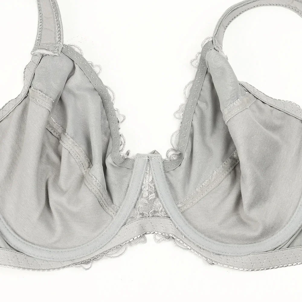 Bra For Women Lace Full Coverage Minimizer Non-Padded Underwire Woman Floral Embroidery Female Plus Size B C D E F G H I NM21