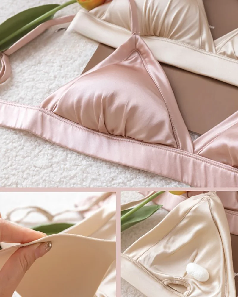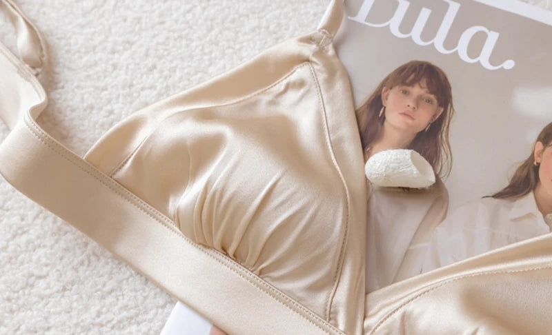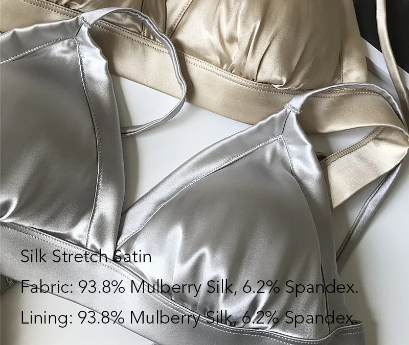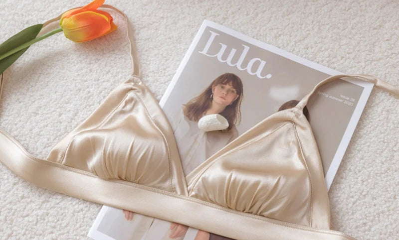 Bralettes for Women 93.8% Mulberry Silk Bra Wireless Wire Free No Underwire Sleep Padded Sexy Triangle V Neck Everyday Bra