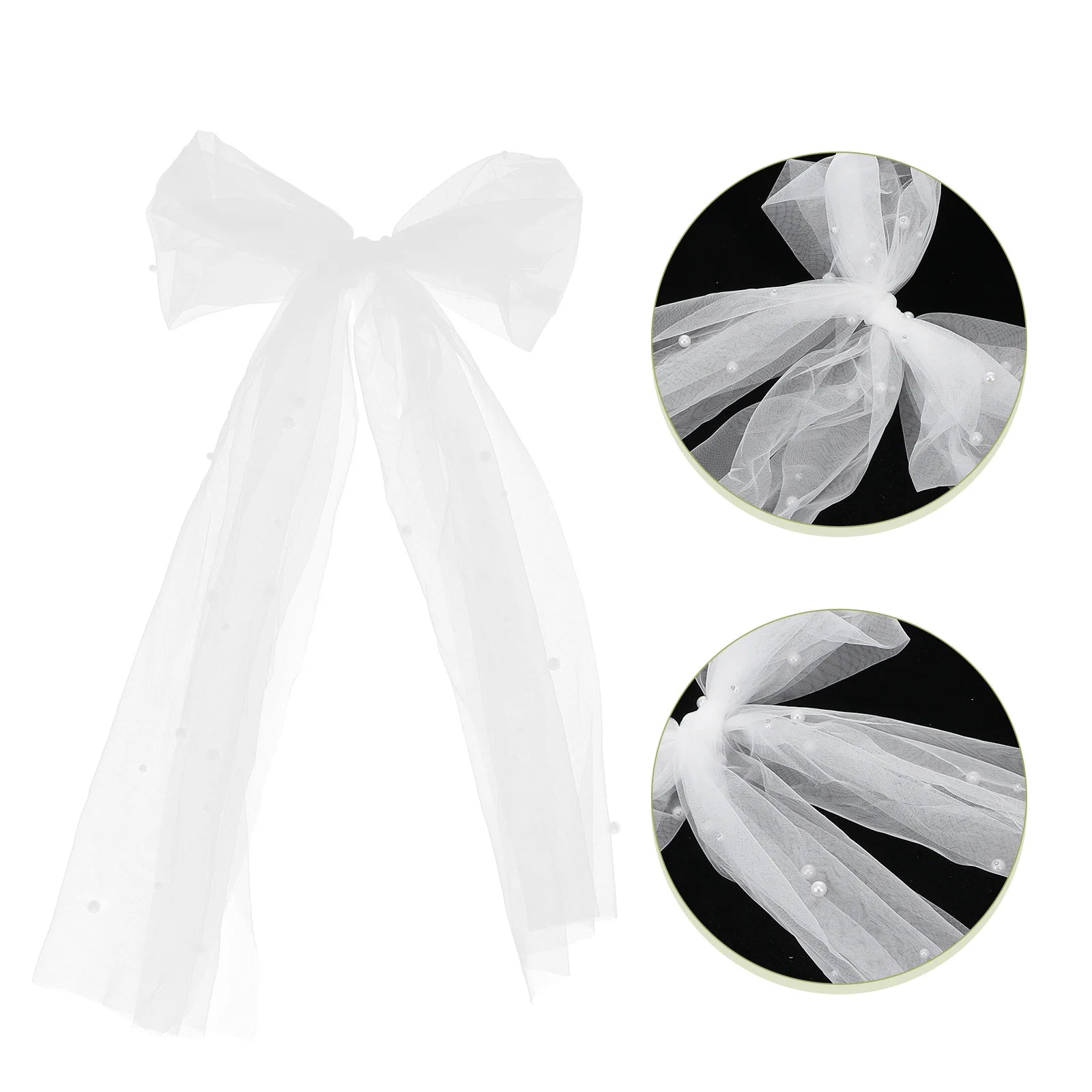 Bridal Bowknot White Beaded Veil Hair Clip Simple Elegant Wedding Accessories Bridal Veil Decor Bride Hairpiece