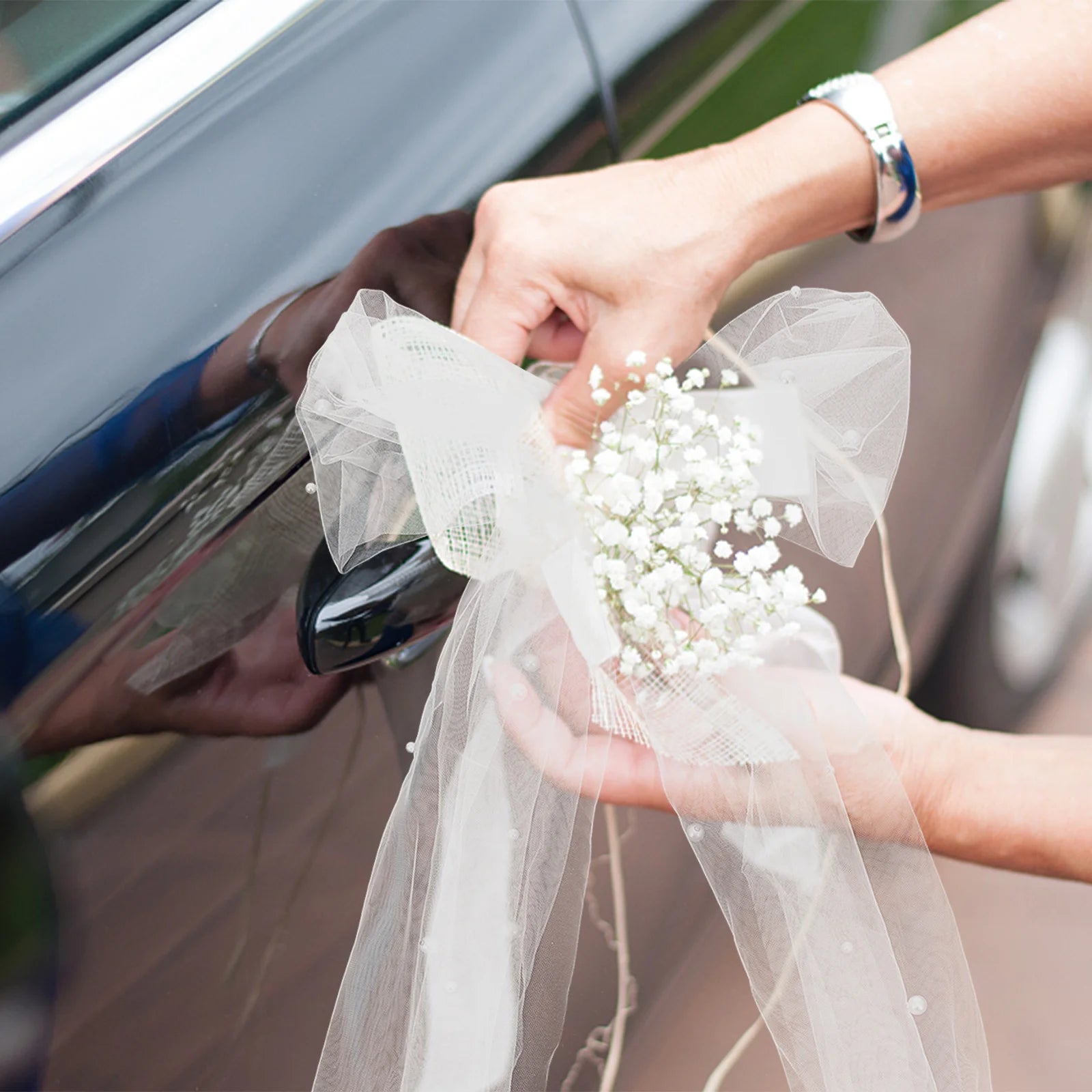 - The wedding bows can be easily attached to antennas, wing mirrors, door handles, candles or windscreen wipers. white wedding veil