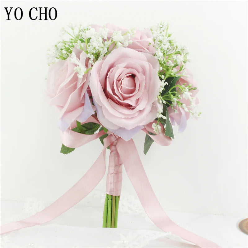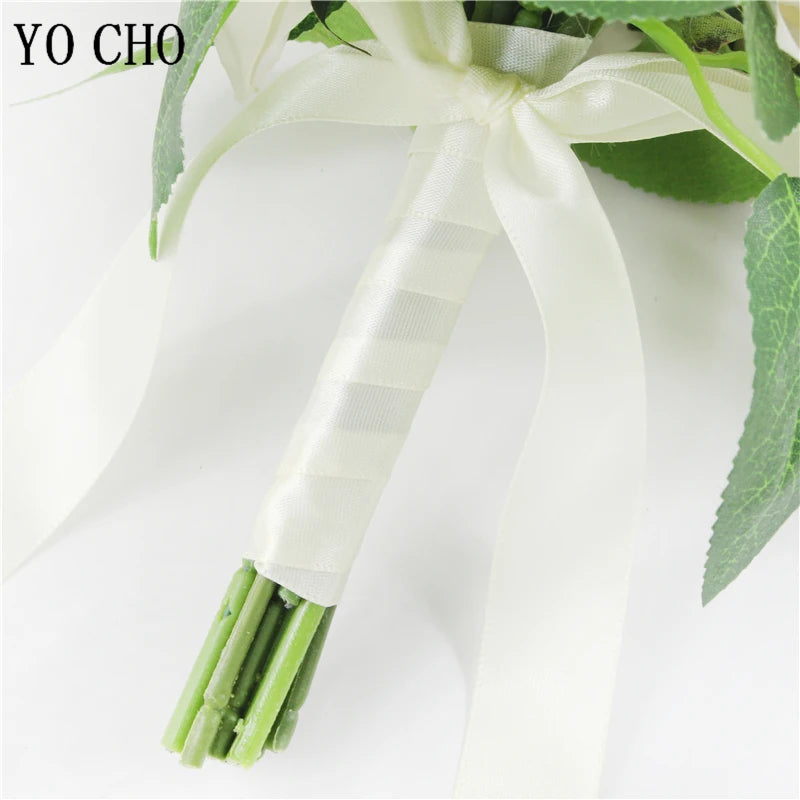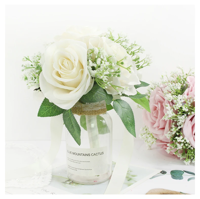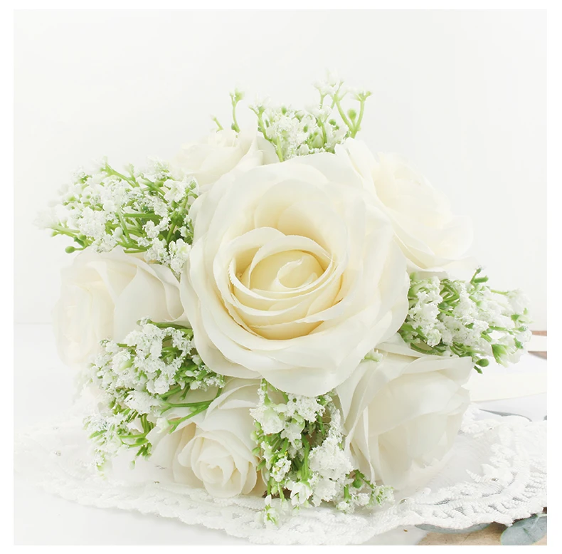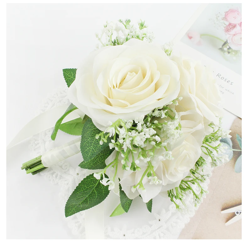 Bridal Bridesmaids Bouquets with Bowknot Ivory Roses Silk Flowers Bouquet for Valentine's Day Marriage Wedding Bride Photography