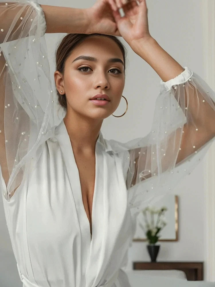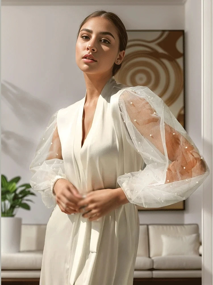 Bridal Gown with Pearls Bride Chic Silk Robe White Boudoir Satin Kimono Ins Popular Birthday Gift Women Dresses with Tulle Dress
