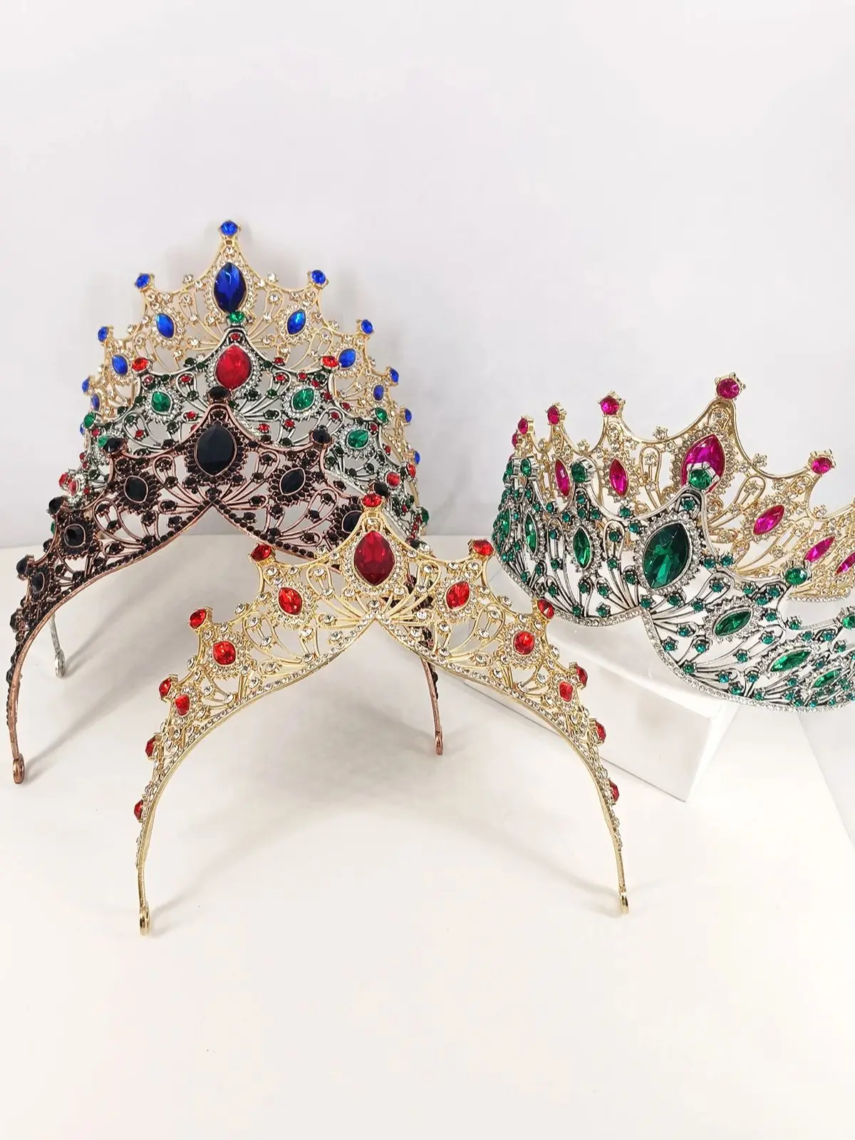 Bridal Headwear Colourful Women's Ballroom Crown Baroque Crystal Tiaras And Crowns Bridal Wedding Hair Accessories Jewelry