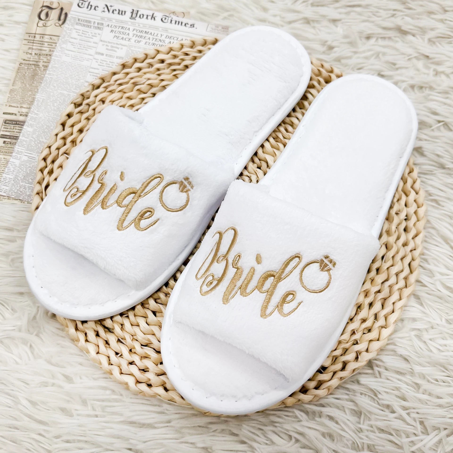 Bridal Party Slippers Set, With Embroidery, Lightweight Cozy Soft Sole Flats, for Brides, Bridesmaids, Guests & Bachelorettes