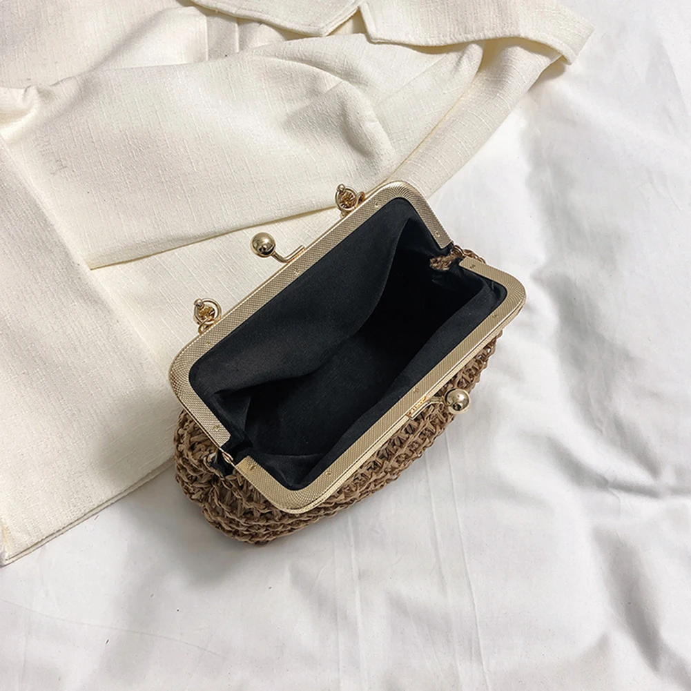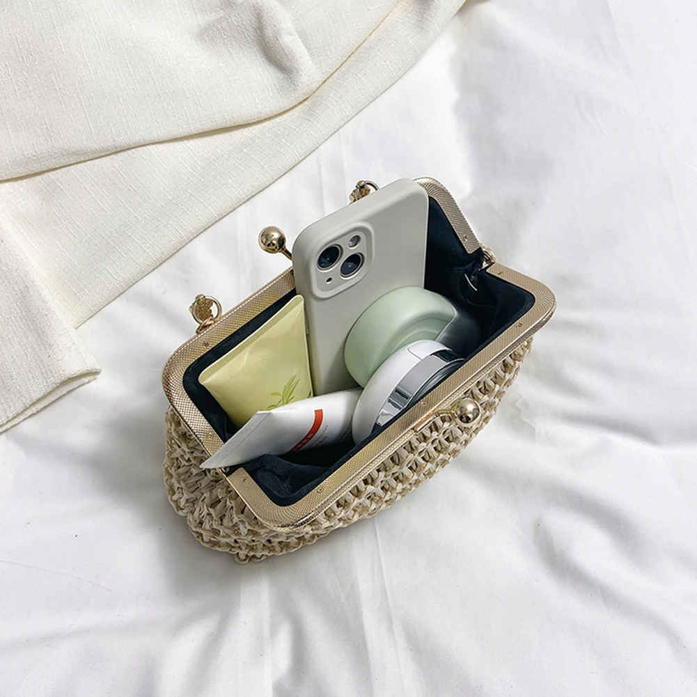 Chain Hand-woven Handbags Summer Female Clutch Bag Simple Texture Dinner Party Handmade Casual Elegant Portable Evening Bag