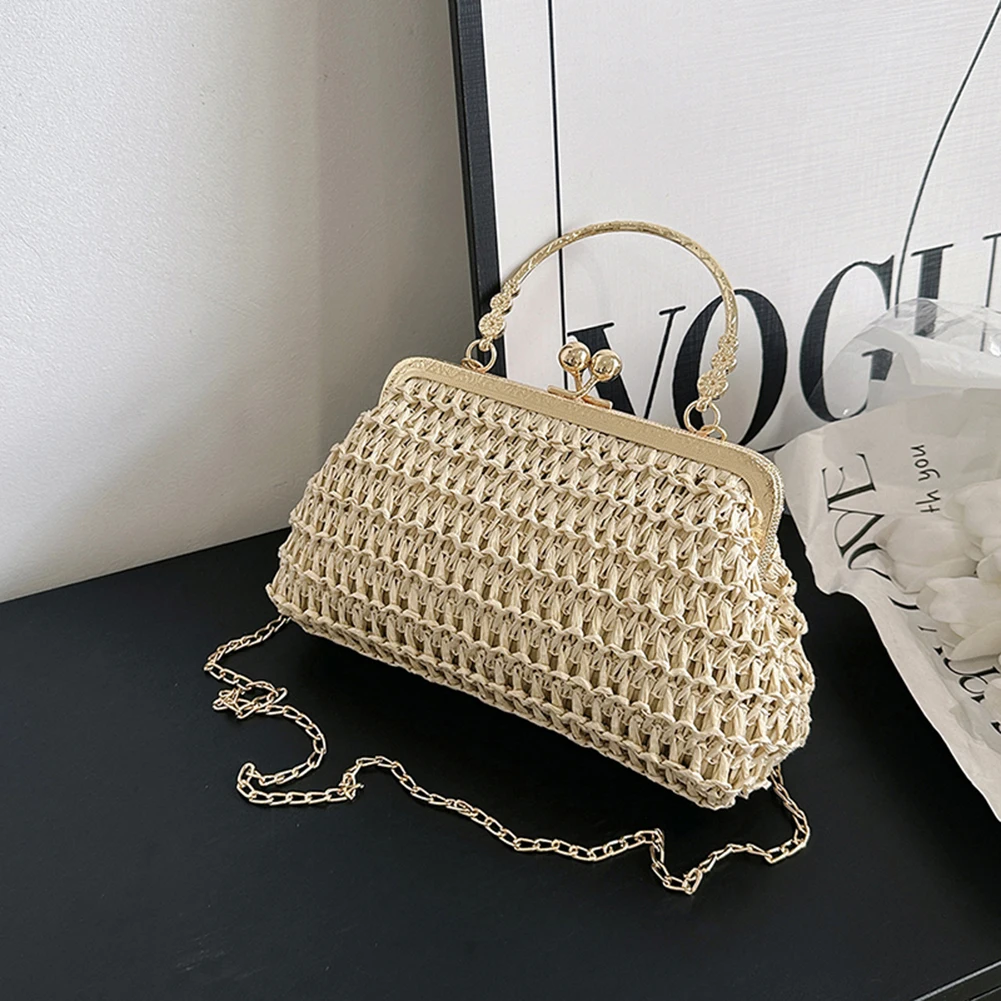 Chain Hand-woven Handbags Summer Woven Tote Bag Simple Texture Dinner Party Handmade Casual Elegant Fashion Portable Evening Bag