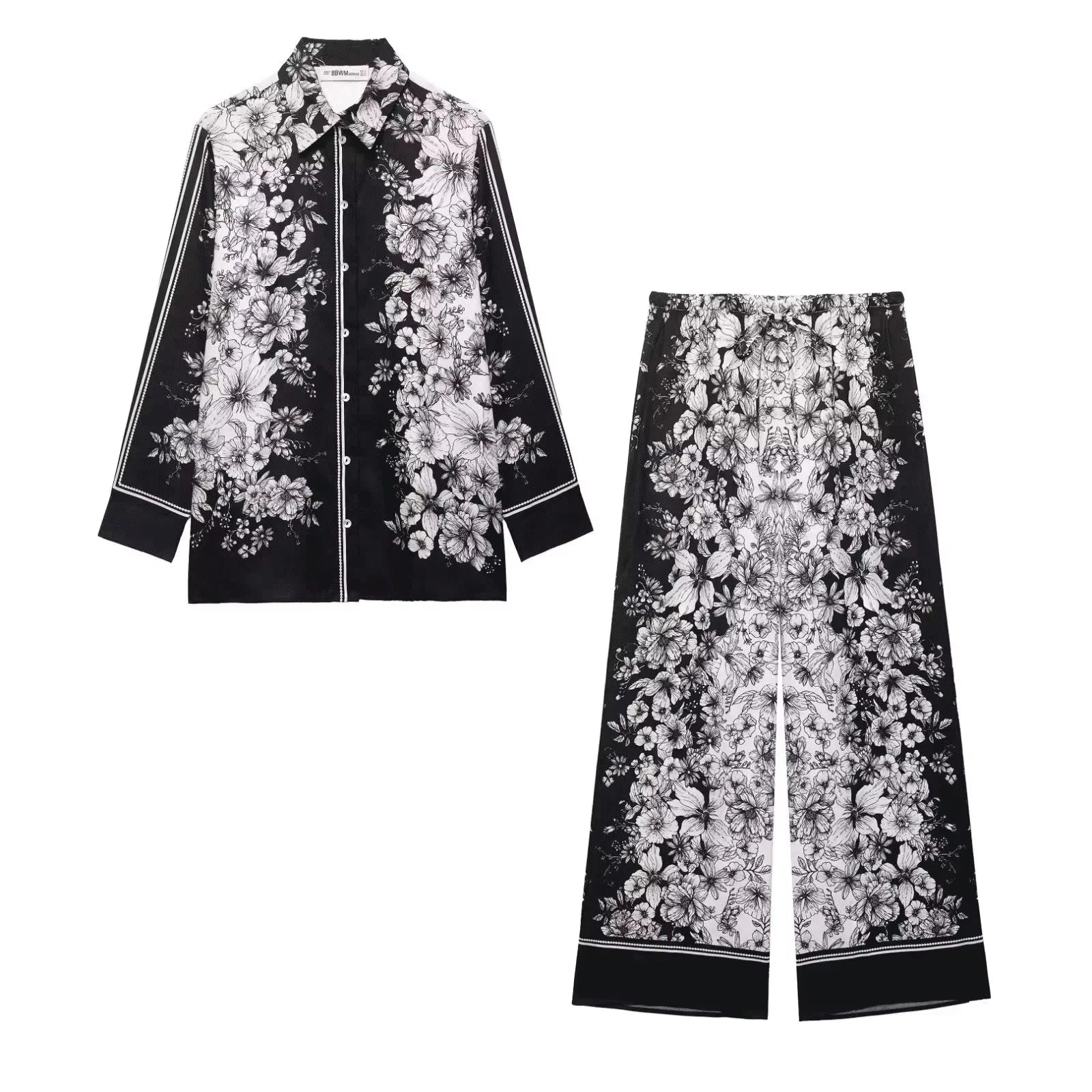 Chic Elegant Pants Set Women's 2 Pieces 2025 New Fashion Printed Shirt Top + Trousers Casual Sets Two Piece Woman Outfits