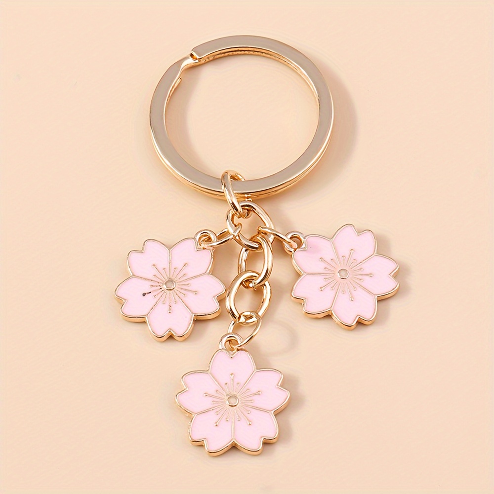 Chic Sakura Cherry Blossom Keychain - Fashionable Zinc Alloy Flower Charm for Handbags & Keys, Perfect Valentine's Gift for Her, Available in Multiple Colors