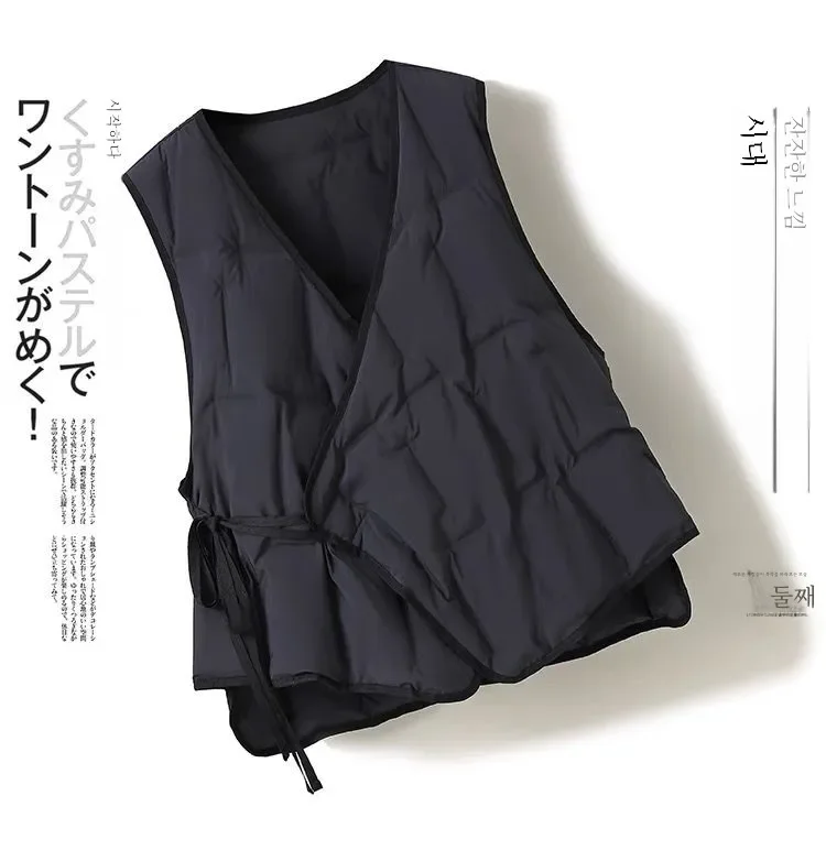 Coat Inner wear Base Liner Collarless V-neck Lightweight Belt down Jacket Cotton-padded Clothes Vest Vest Vest Outer Wear