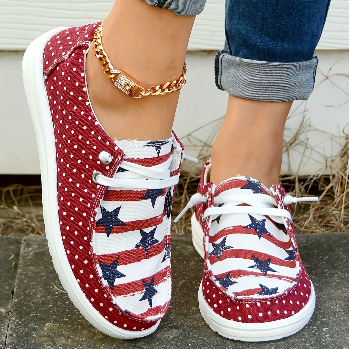 [Comfortable Skateboard Shoes] Summer Independence Day Ladies Soft-Soled Outdoor Skateboard Shoes, Casual Striped Star Low-Top Comfortable Large Women's Shoes