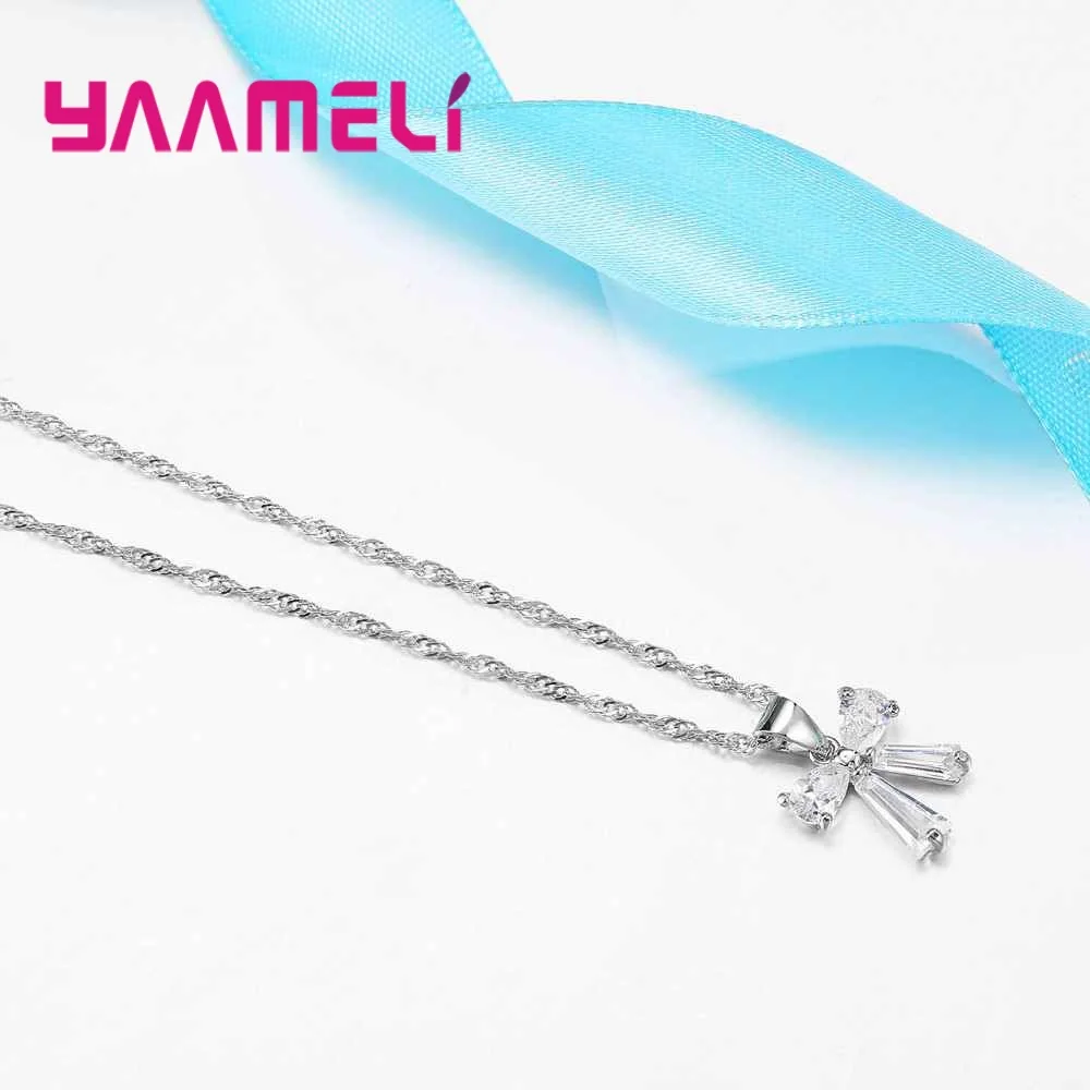 Crystal Bowknot Jewelry Sets Include 925 Sterling Silver Necklace Earrings SetsFor Women Gorgeous Accessories