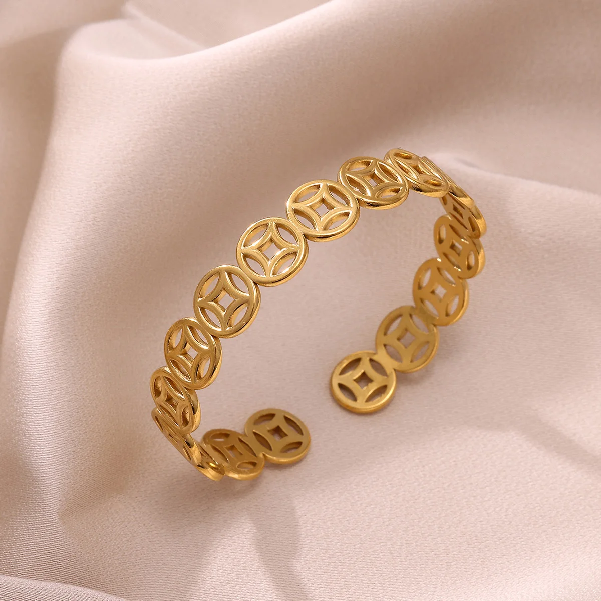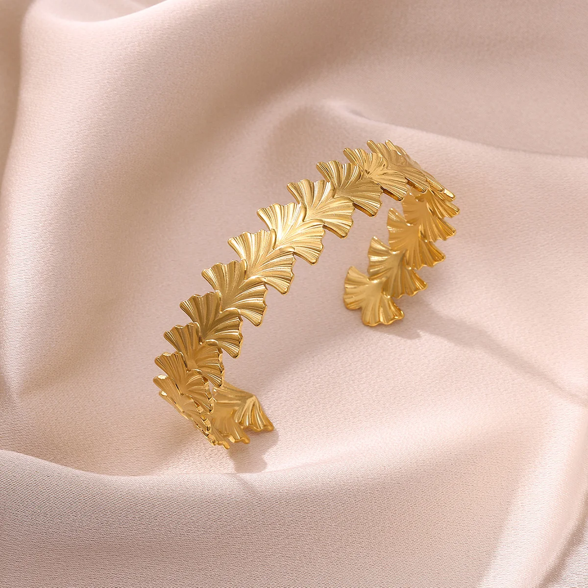 Cuff Bangles For Women Gold Color Punk Geometric Ginkgo Open Bracelet Turtle Jewelry Stainless Steel Waterproof Summer Party