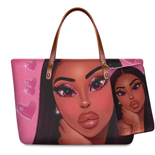 Ladies Beach Tote Women African Girls Handbags Purse Set sac a main |