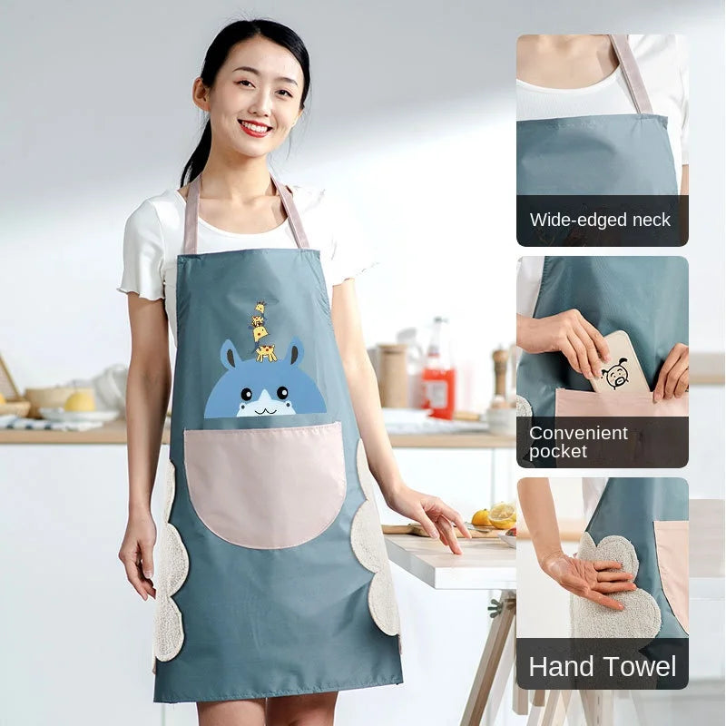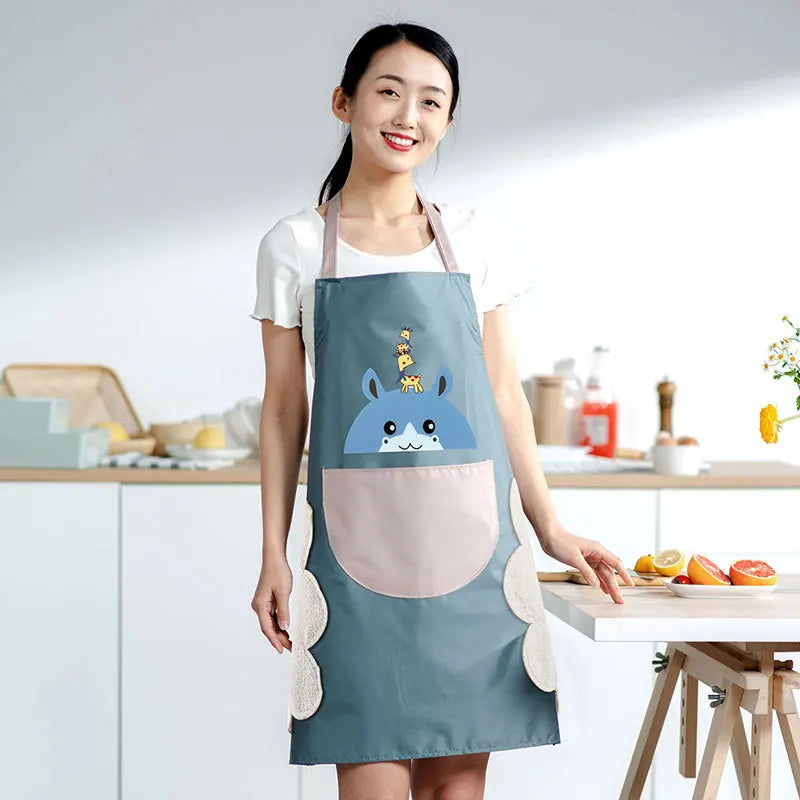 Cute Kitchen Apron for Women Waterproof and Oil Proof with Hand-Wiping Cover Wholesale