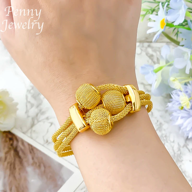 Daily Wear Exquisite Jewelry Set for Women Necklace Earrings Bracelet Dubai Gold Plated Jewellery for Banquet Party Wedding Gift