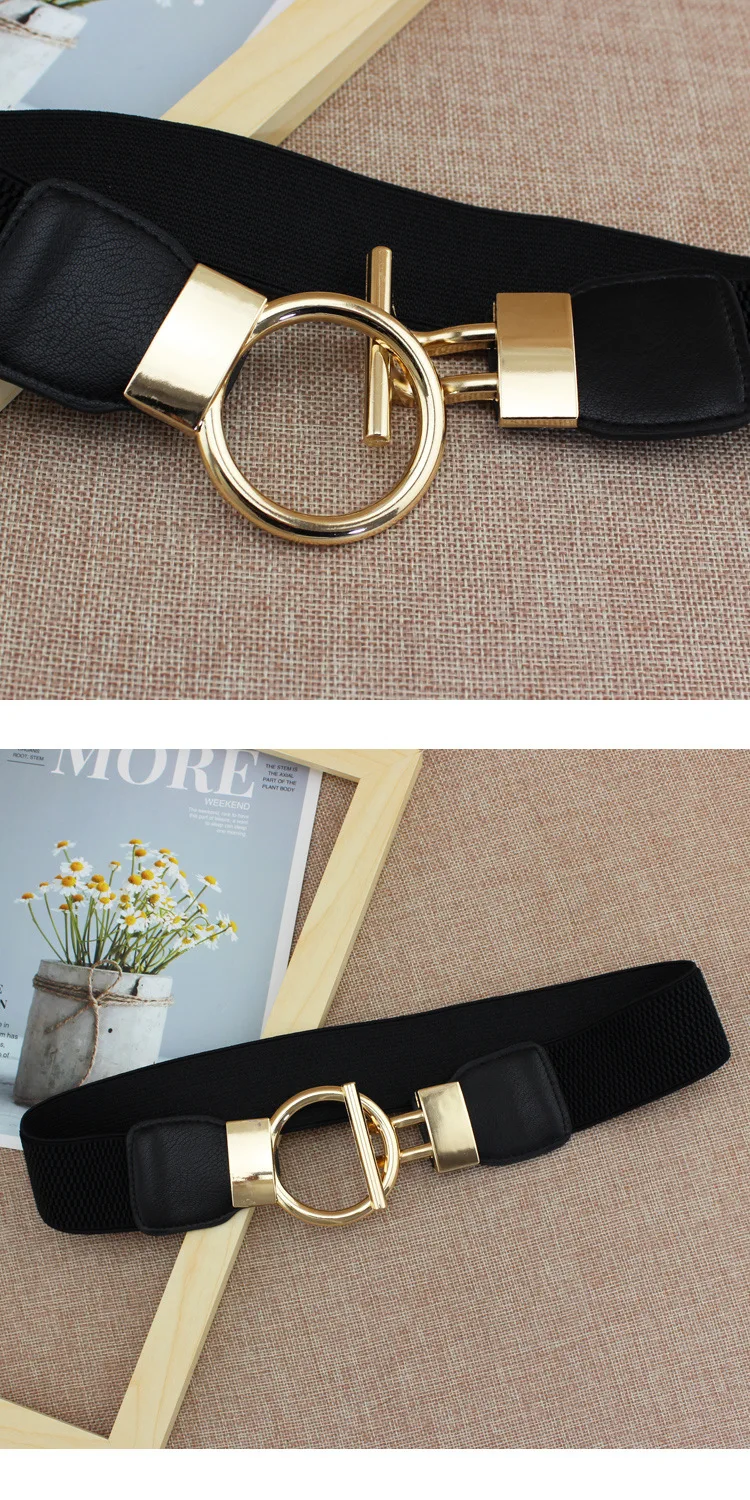 Designer Luxury Fashion Girl Elastic Belt New Dress Skirt Elastic Wide Waist Seal Gold Round Buckle Women's Decorative Belts