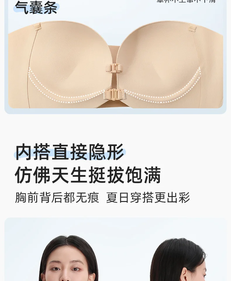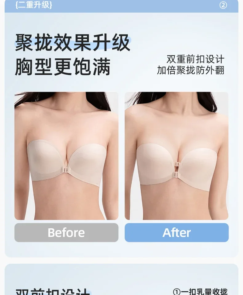 Double Front-buttoned Strapless Bra for Women, Invisible, Anti-slip, Strapless and Backless, with A Close-in Top Support Bra
