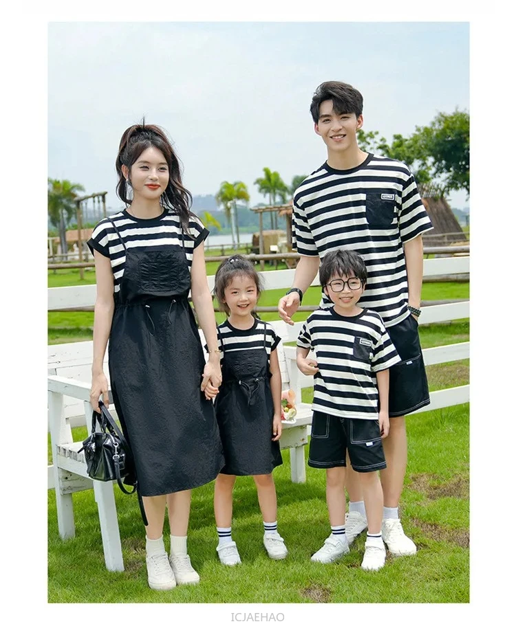 Dress 2025 Woman Family Couple Matching Clothes Parent-child Mom Daughter Dress Dad Son T Shirt Sibling Brother Sister Outfits